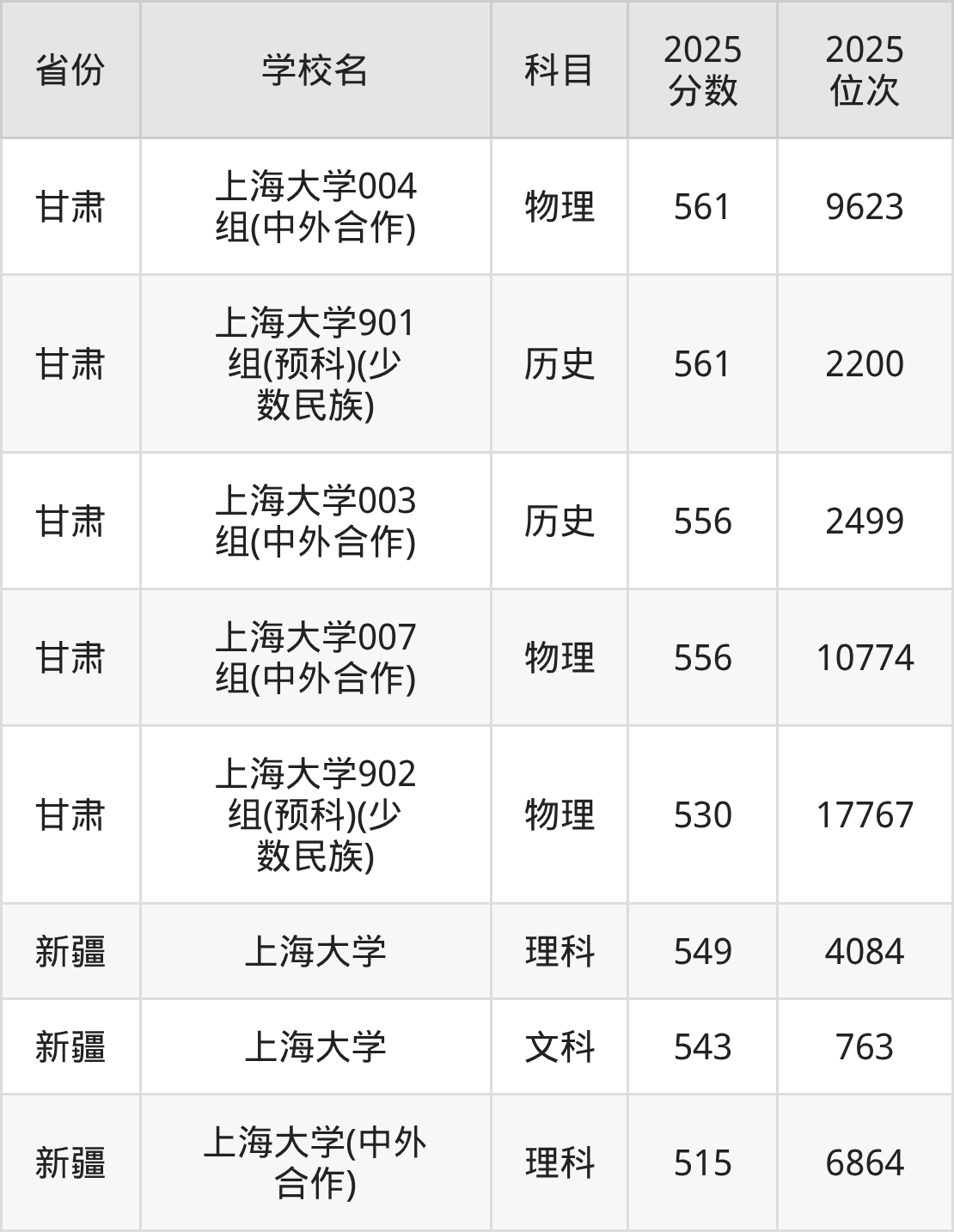 | 学校名 | 2025 分数 | 2025 位次 |