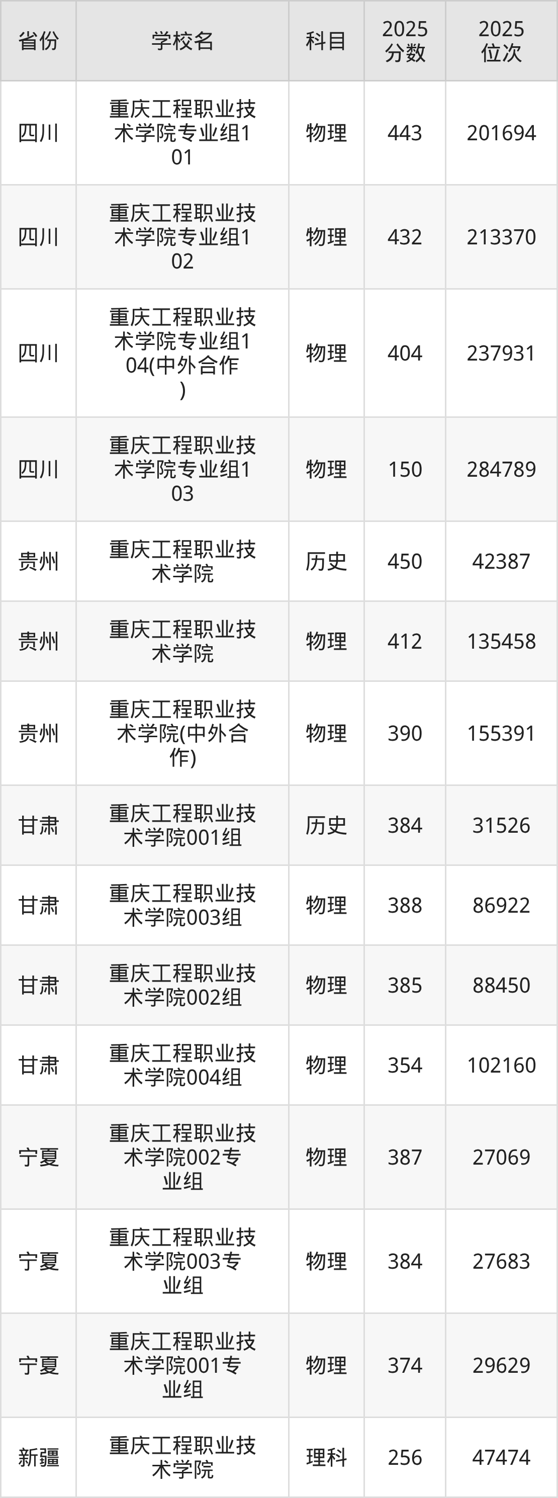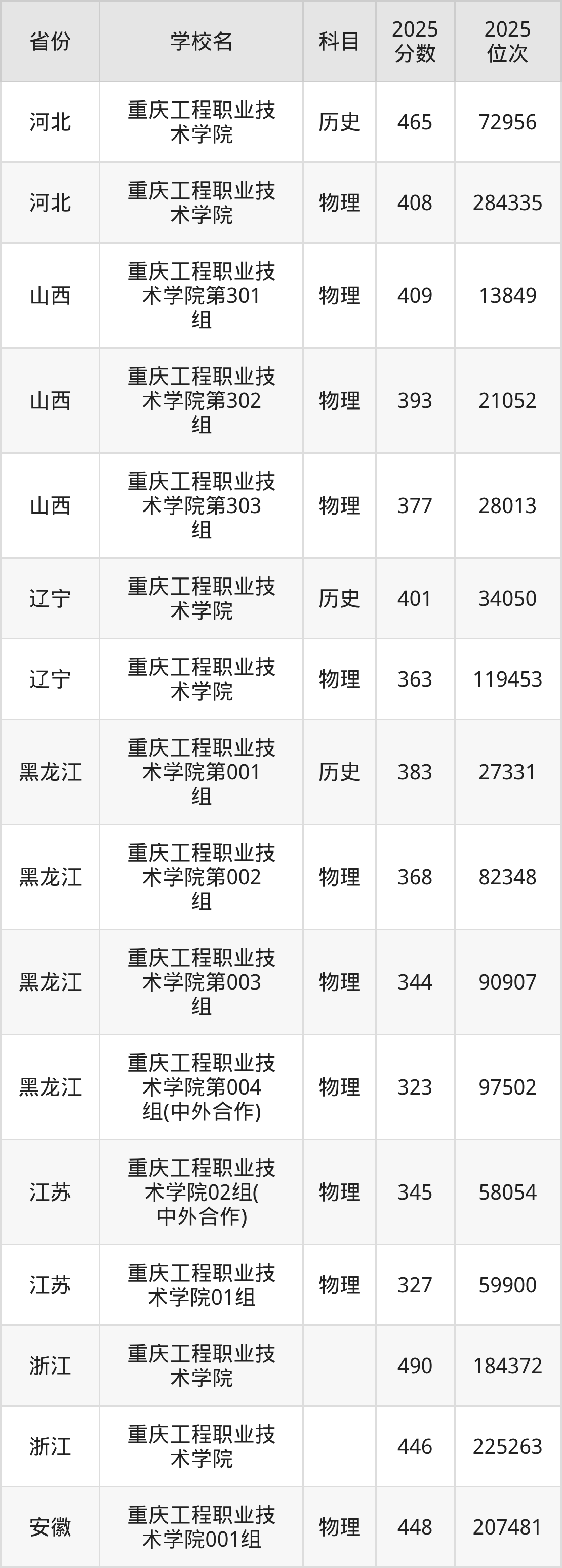 下面是重庆工程职业技术学院2025年录取分数线各省汇总,一起来了解下吧。
