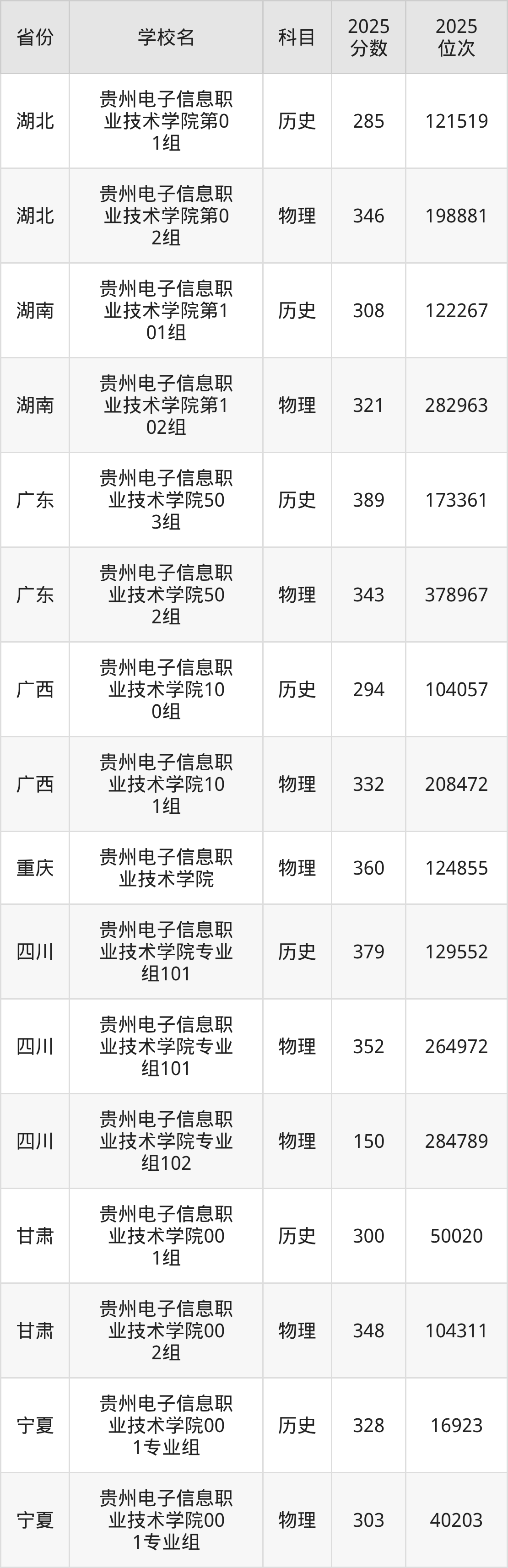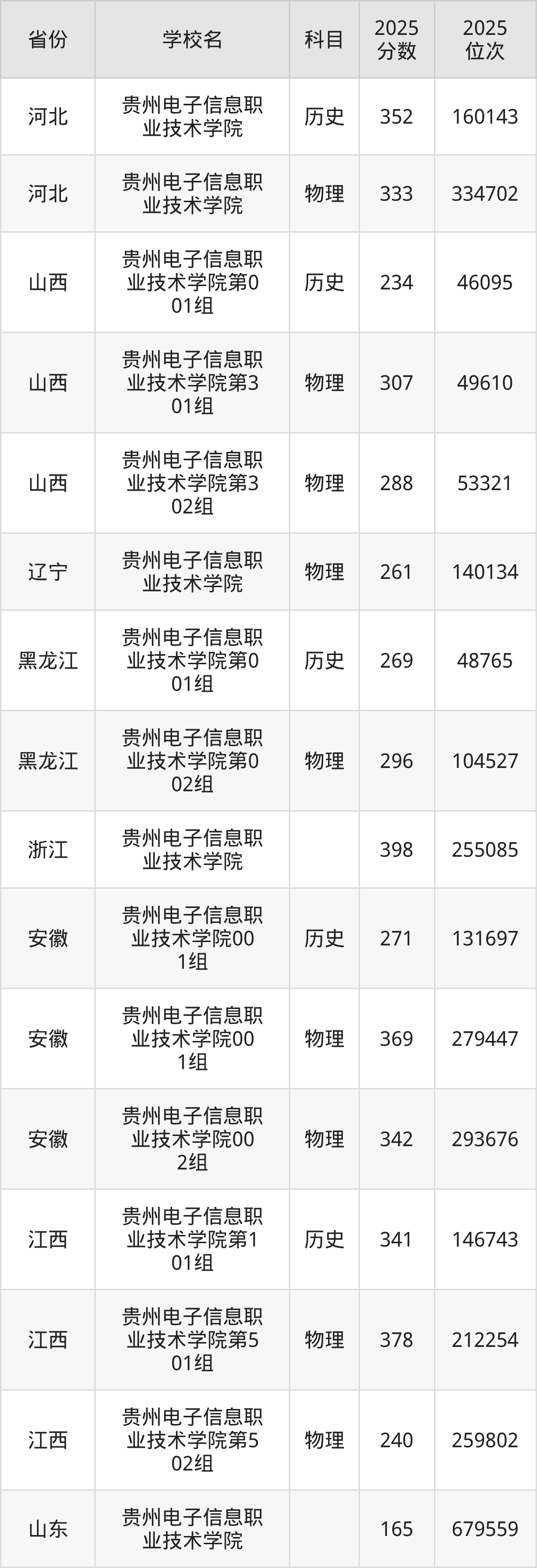 下面是贵州电子信息职业技术学院2025年录取分数线各省汇总,一起来了解下吧。