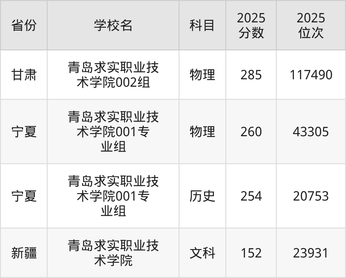 下面是青岛求实职业技术学院2025年录取分数线各省汇总,一起来了解下吧。