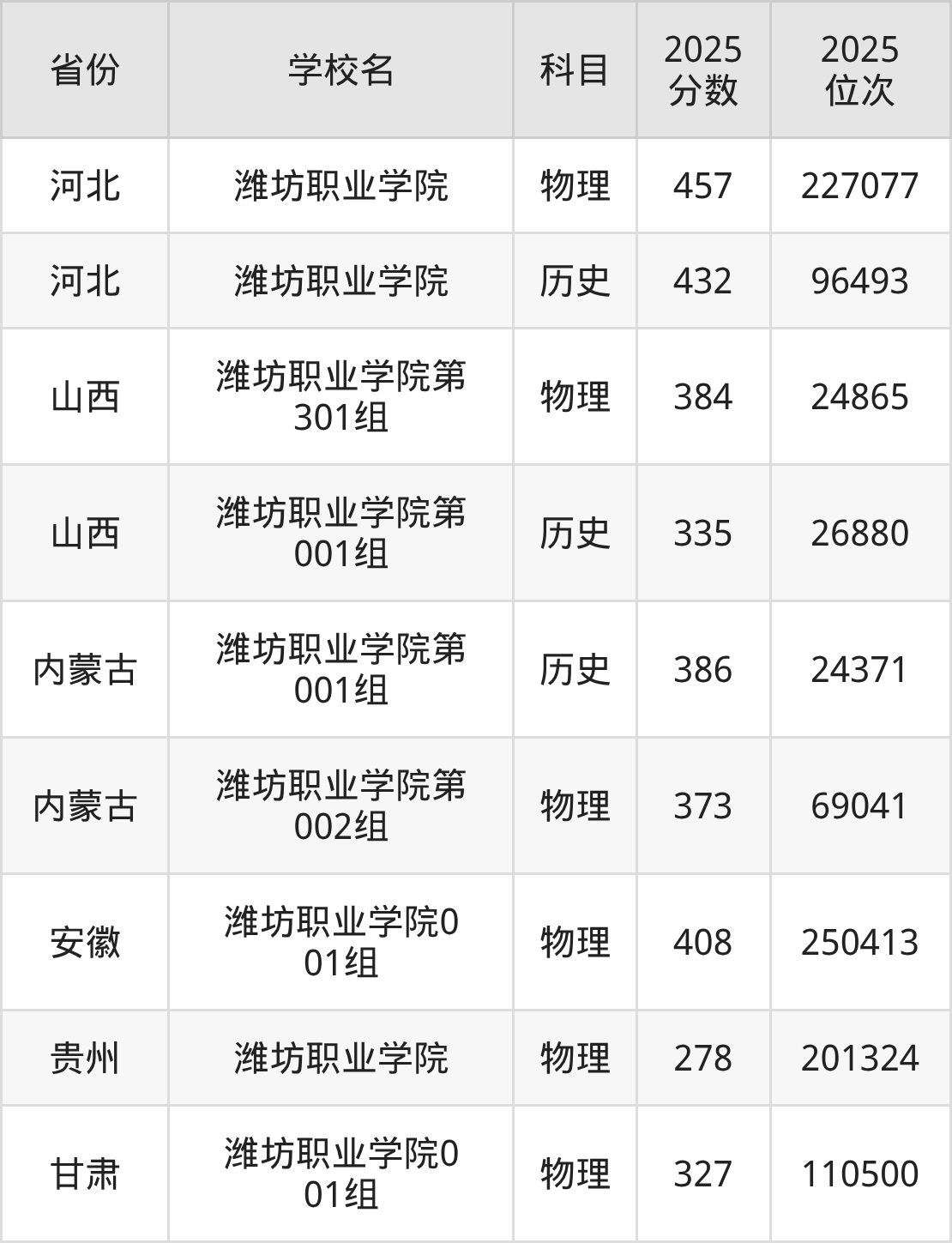 下面是潍坊职业学院2025年录取分数线各省汇总,一起来了解下吧。