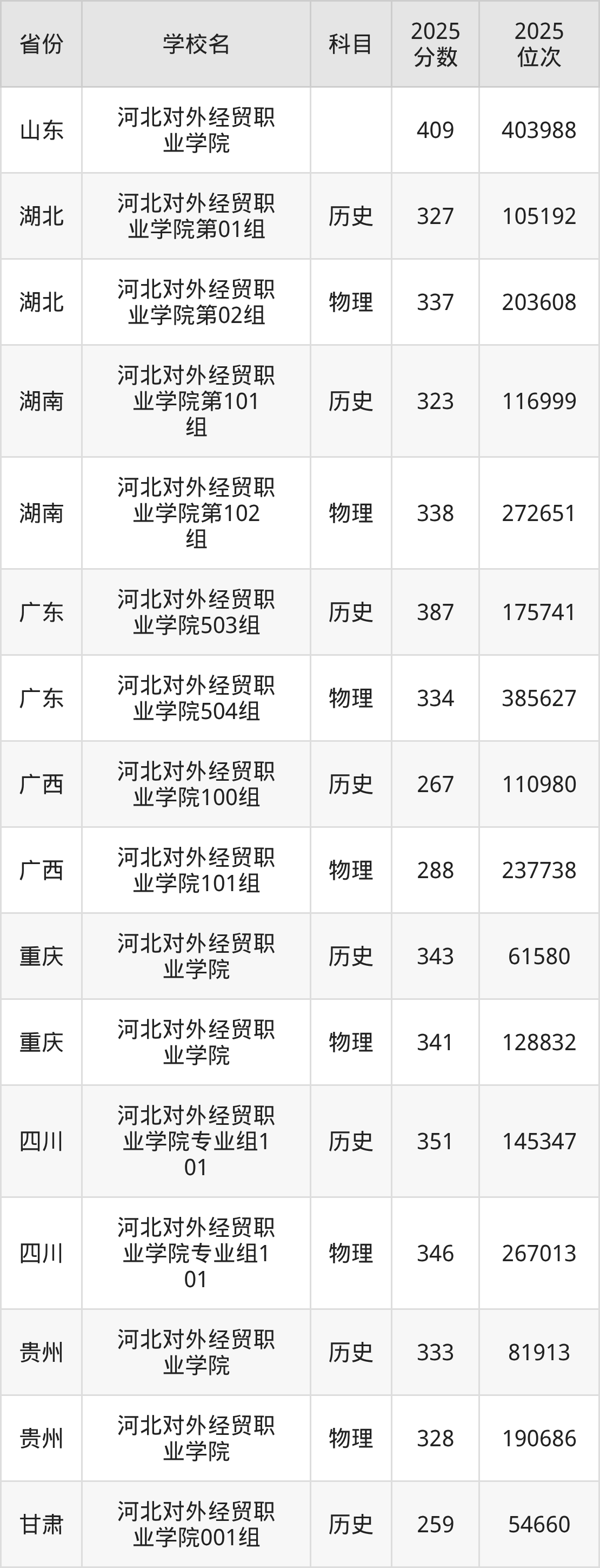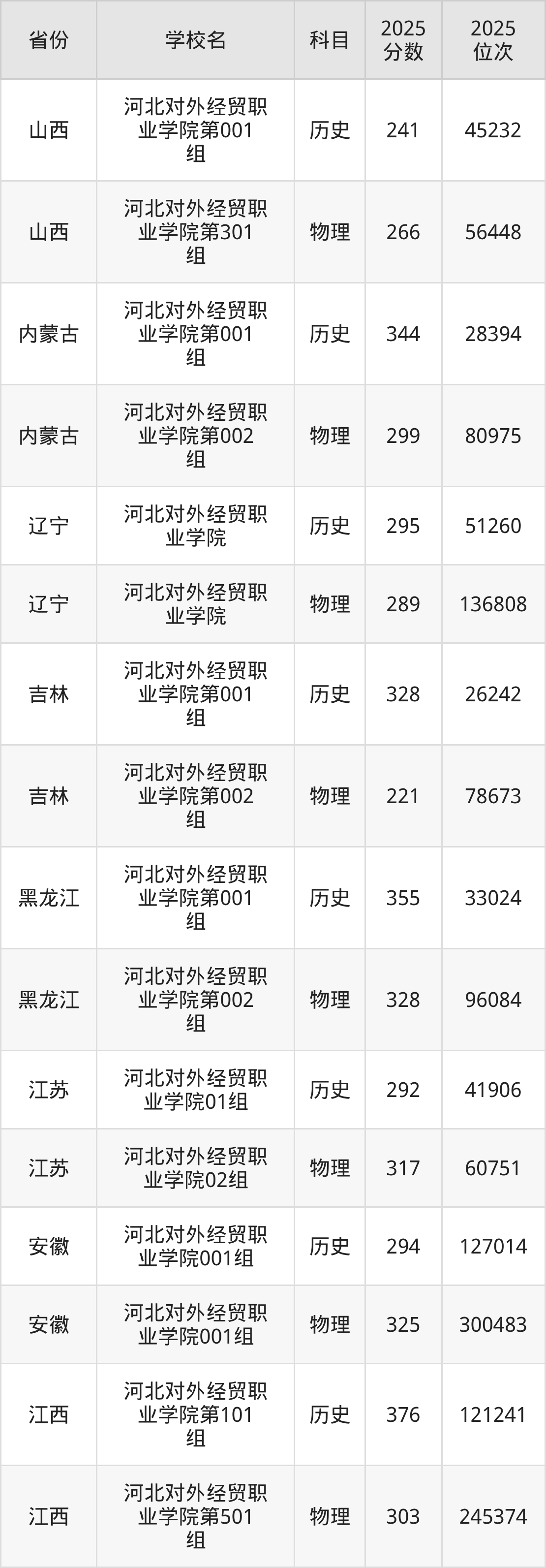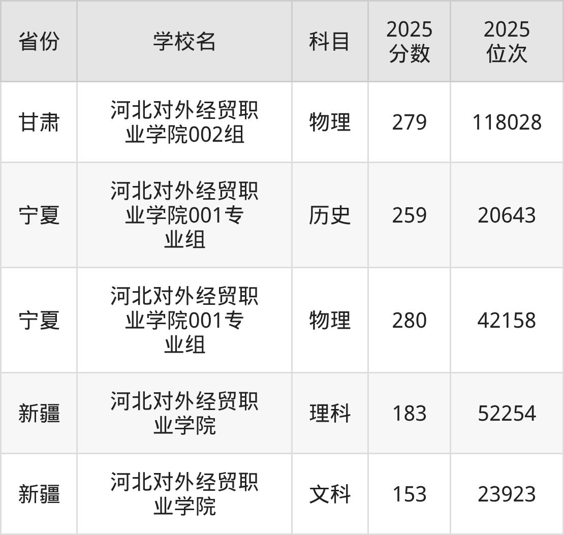 下面是河北对外经贸职业学院2025年录取分数线各省汇总,一起来了解下吧。