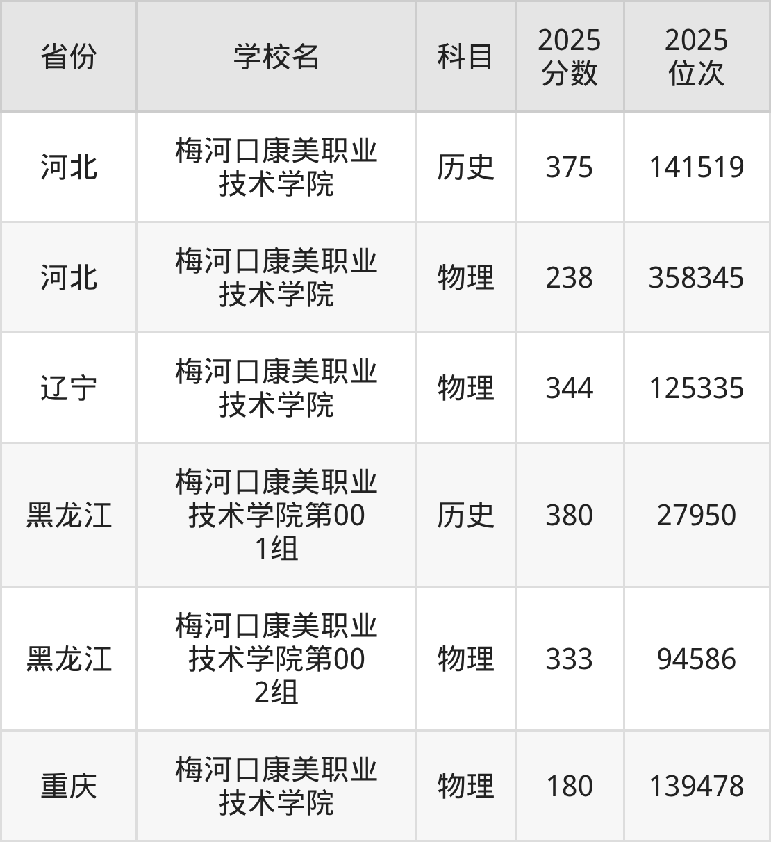 2025年梅河口康美职业技术学院历史类最低分321分(26668名)、物理类最低分171分(78979名)。