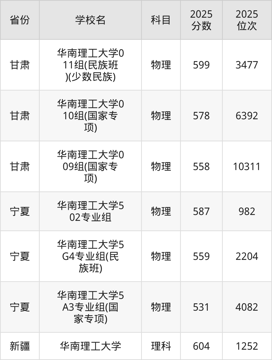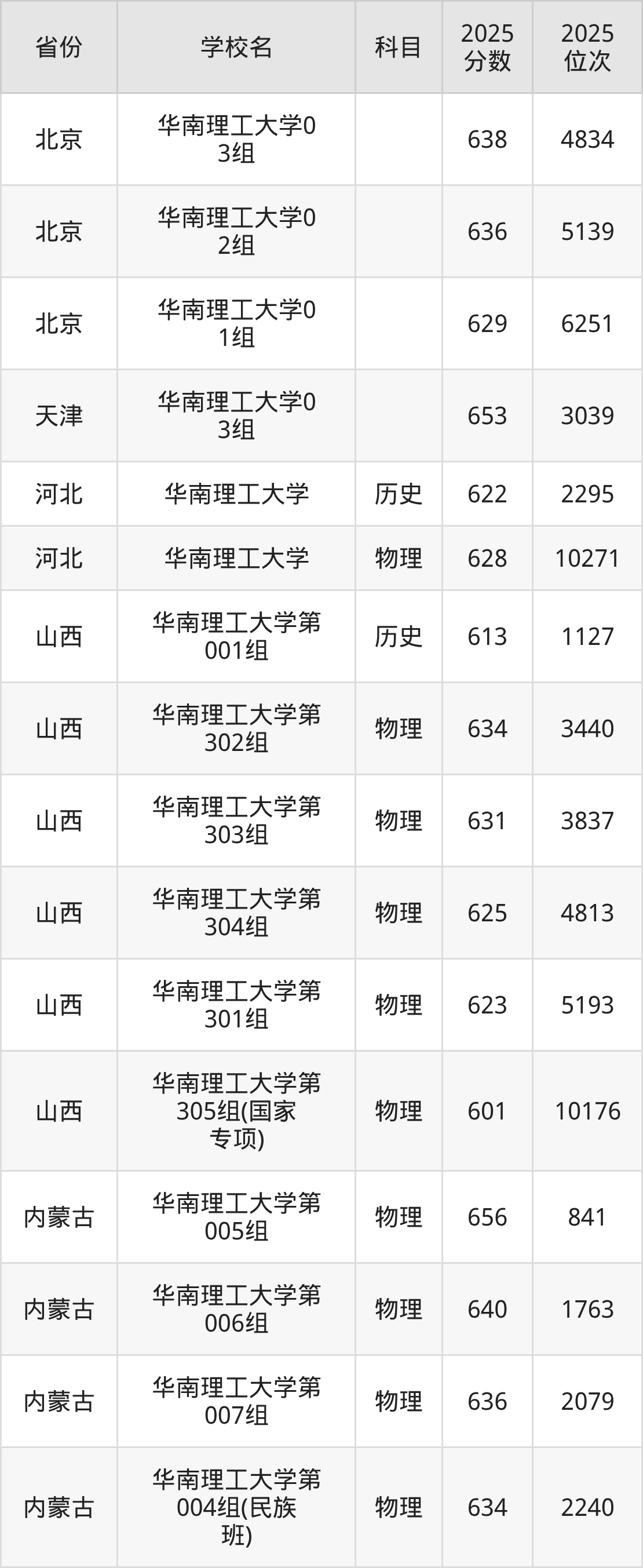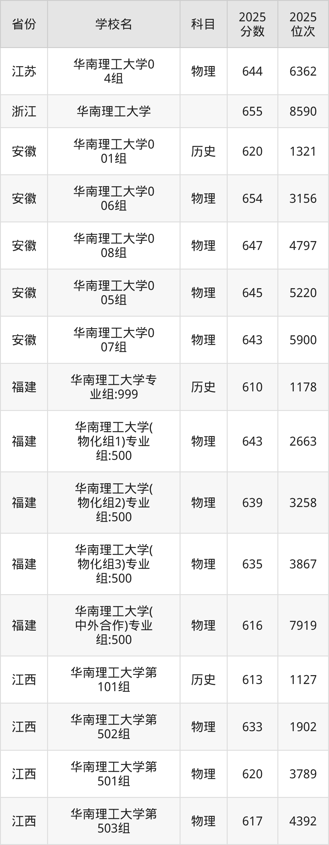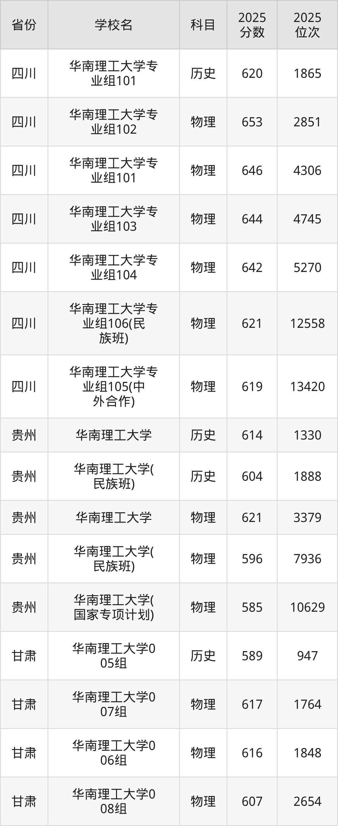 2025年华南理工大学历史类最低分615分(2478名)、物理类最低分622分(12953名)。