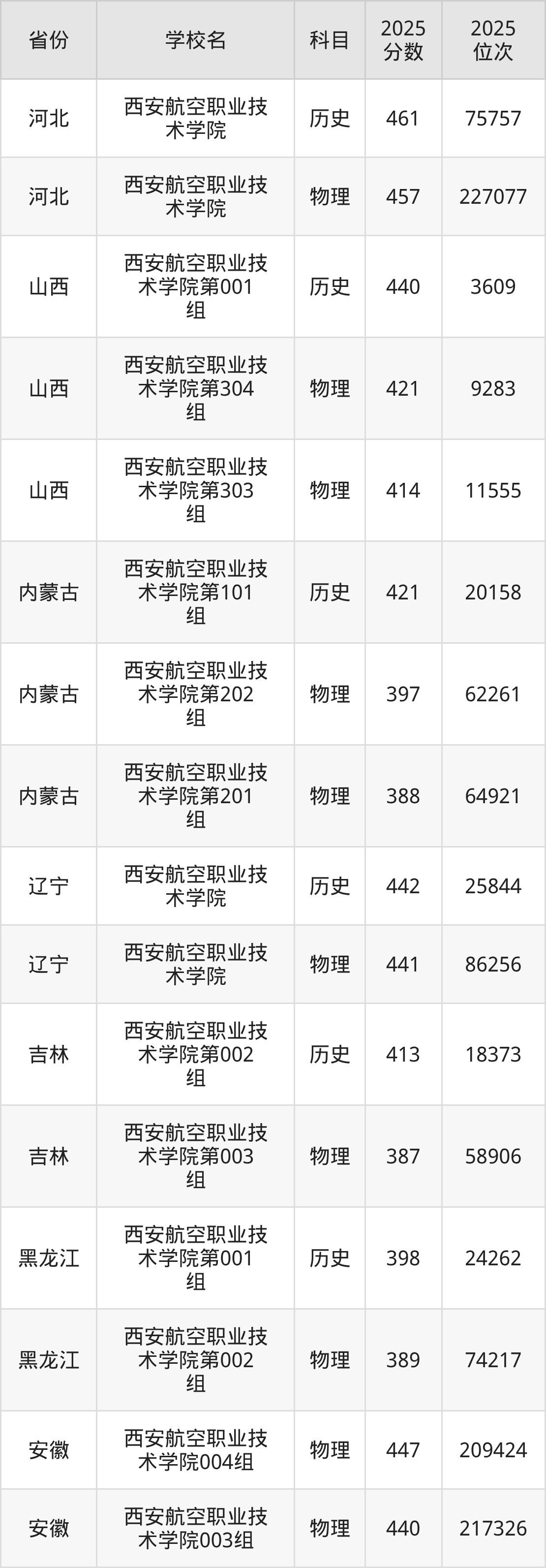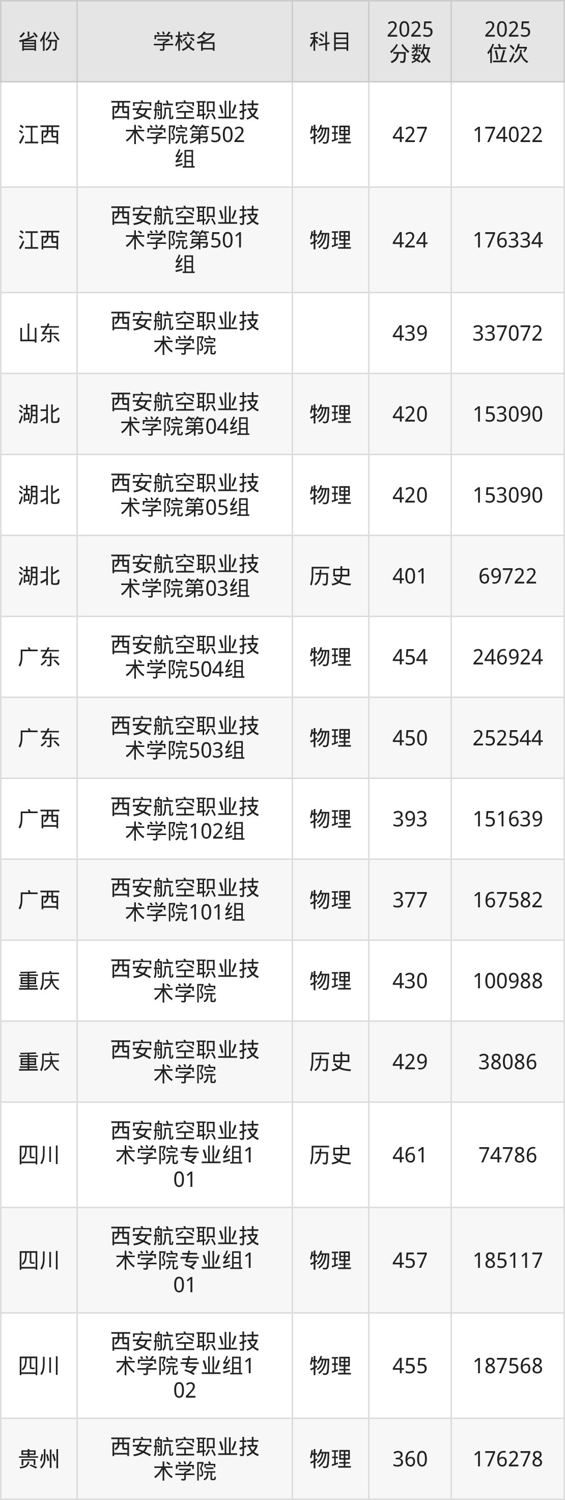 下面是西安航空职业技术学院2025年录取分数线各省汇总,一起来了解下吧。