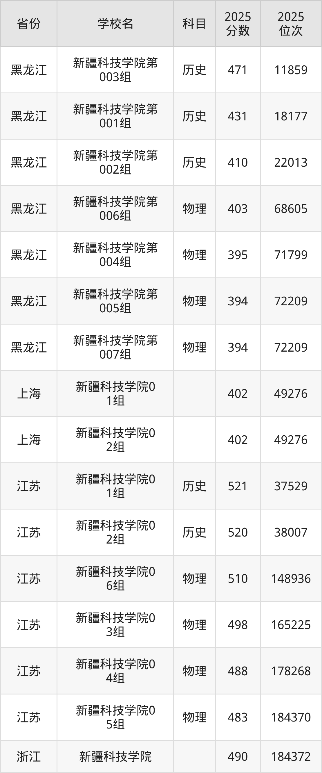 2025年新疆科技学院文科最低分384分(9130名)、理科最低分334分(34077名)。