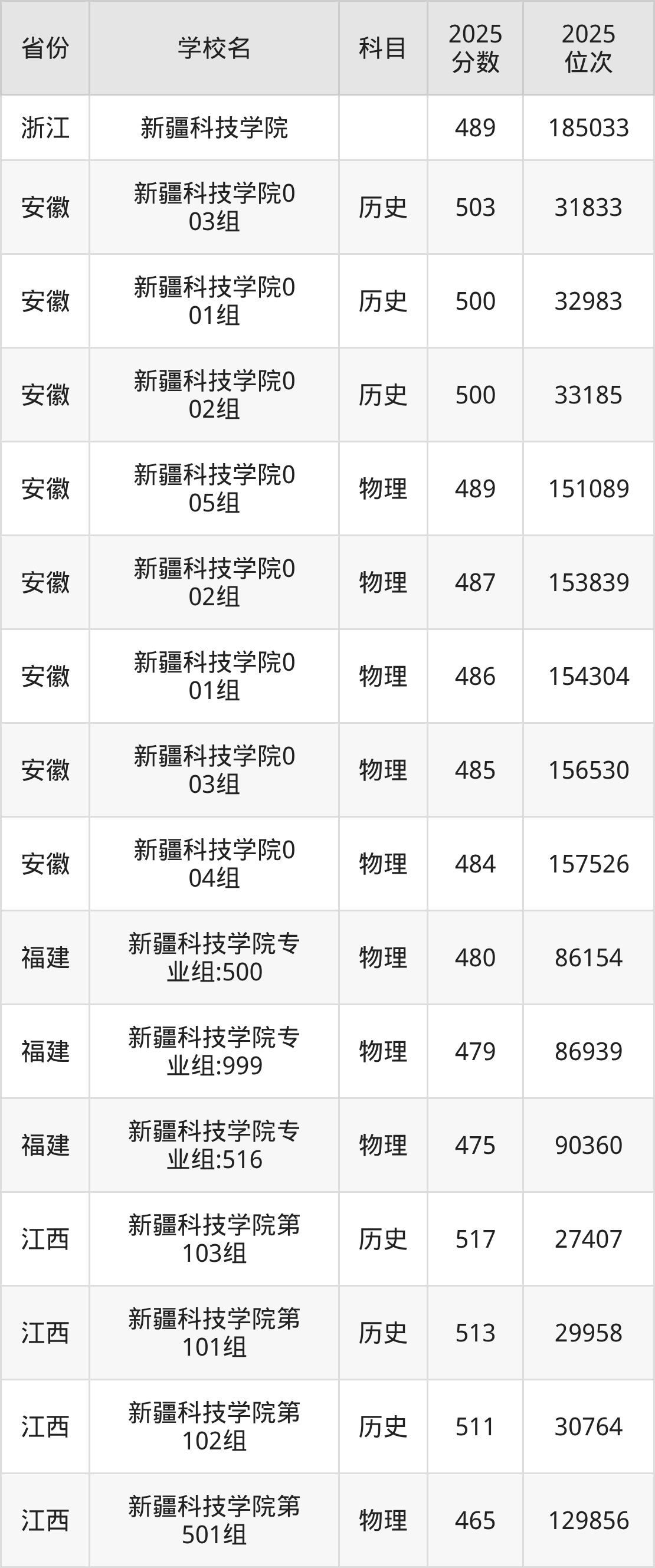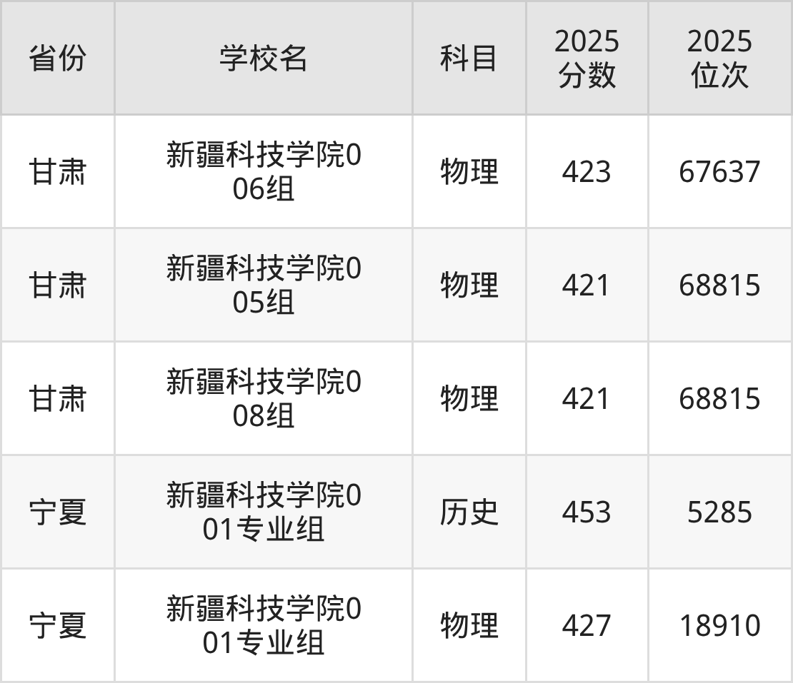 | 学校名 | 科目 | 2025 分数 | 2025 位次 |