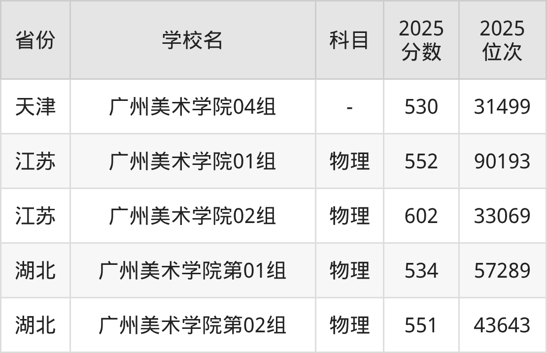 2025年广州美术学院历史类最低分536分(32132名)、物理类最低分522分(125758名)。