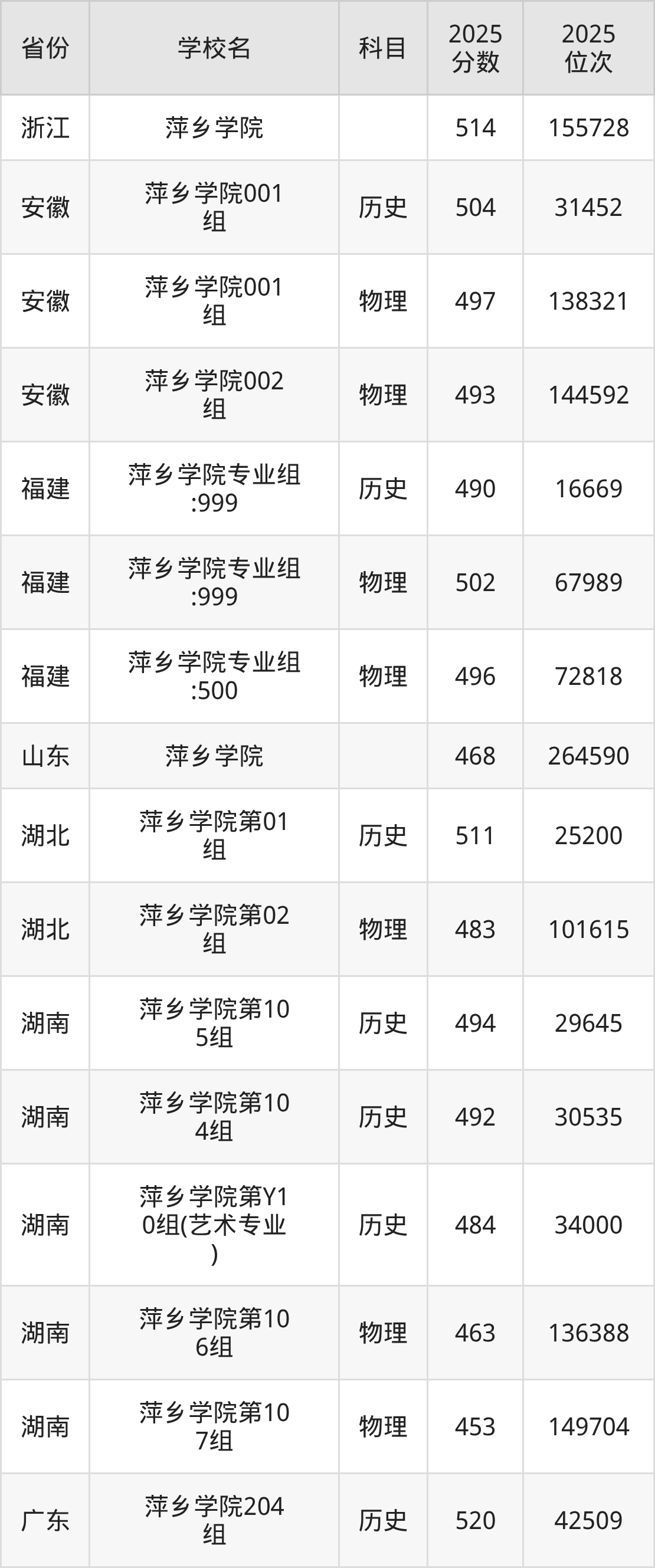 下面是萍乡学院2025年录取分数线各省汇总,一起来了解下吧。