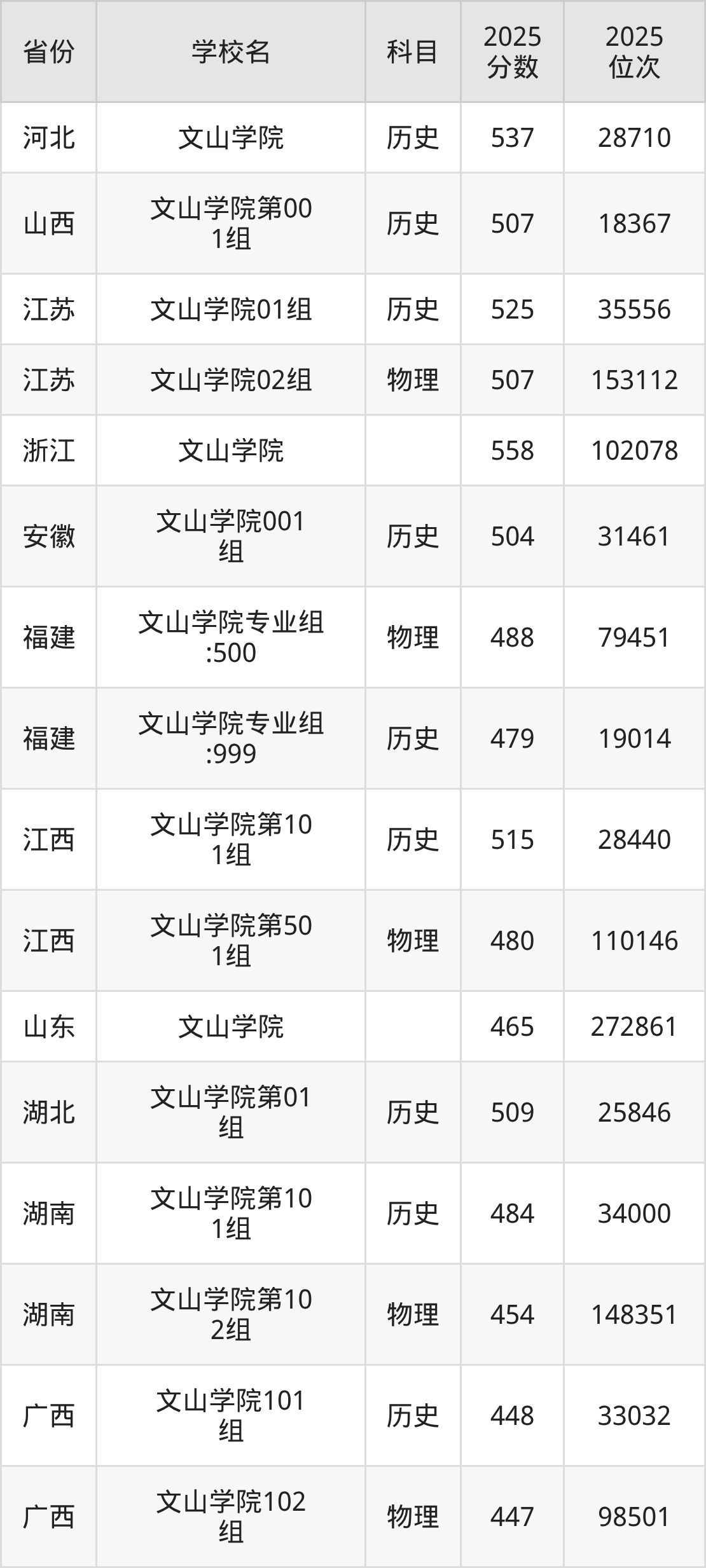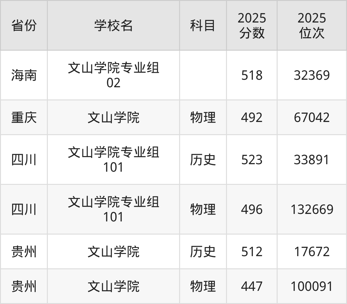 2025年文山学院历史类最低分484分(34000名)、物理类最低分454分(148351名)。