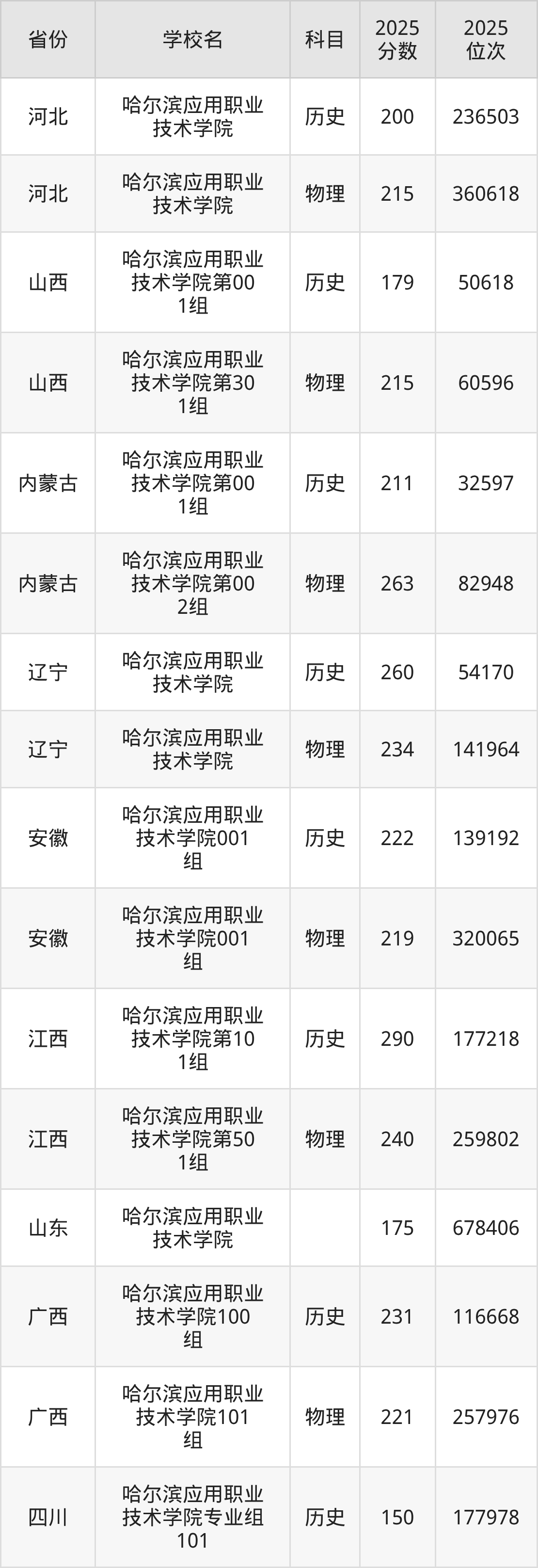 下面是哈尔滨应用职业技术学院2025年录取分数线各省汇总,一起来了解下吧。