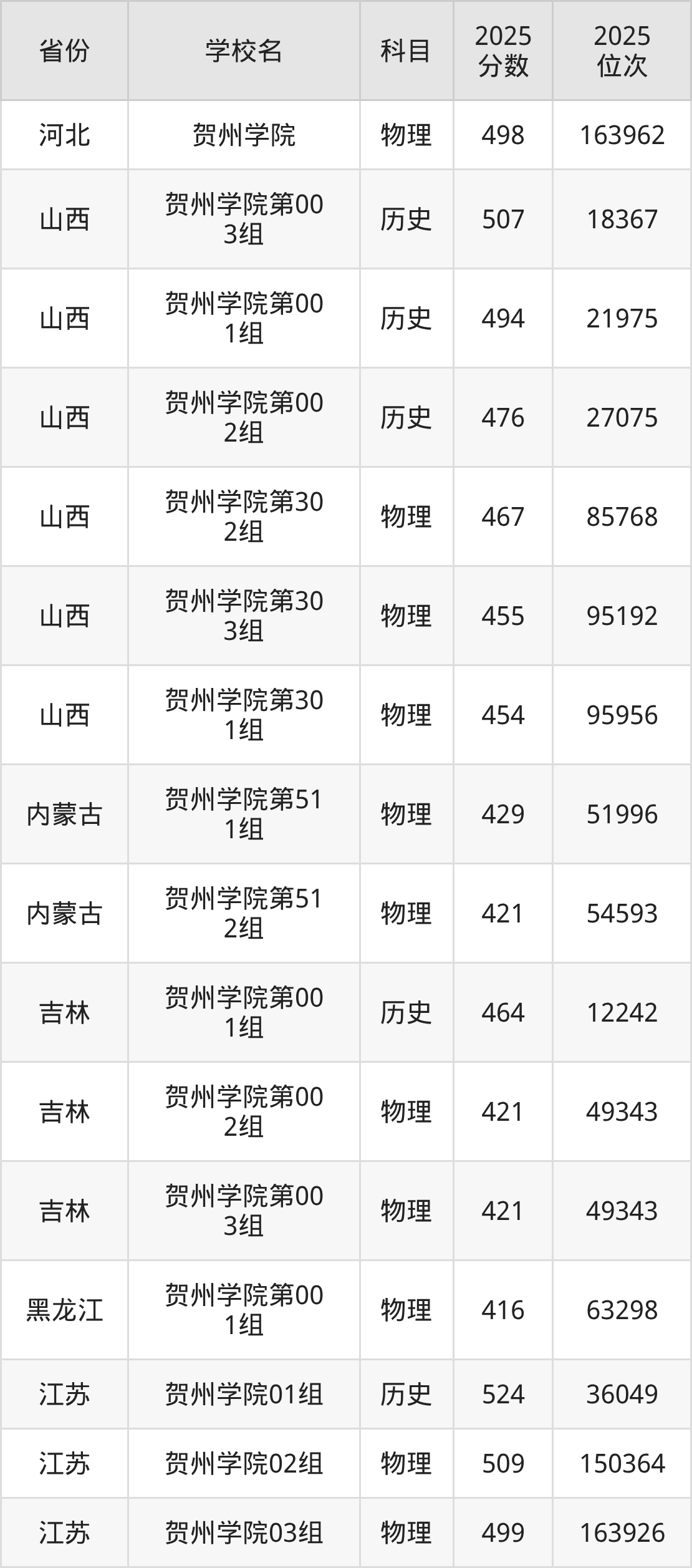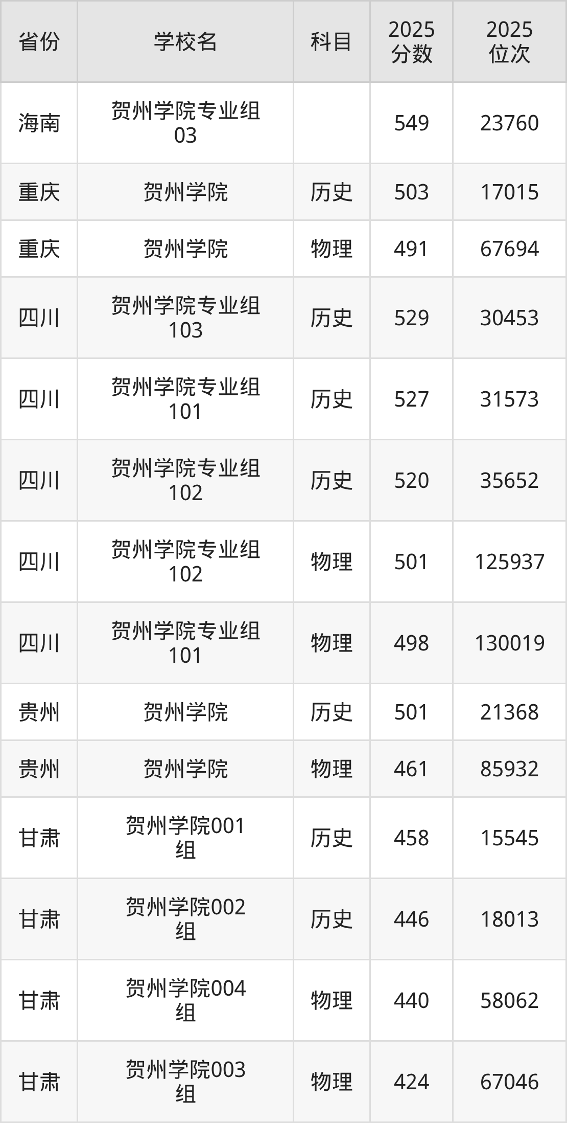 下面是贺州学院2025年录取分数线各省汇总,一起来了解下吧。