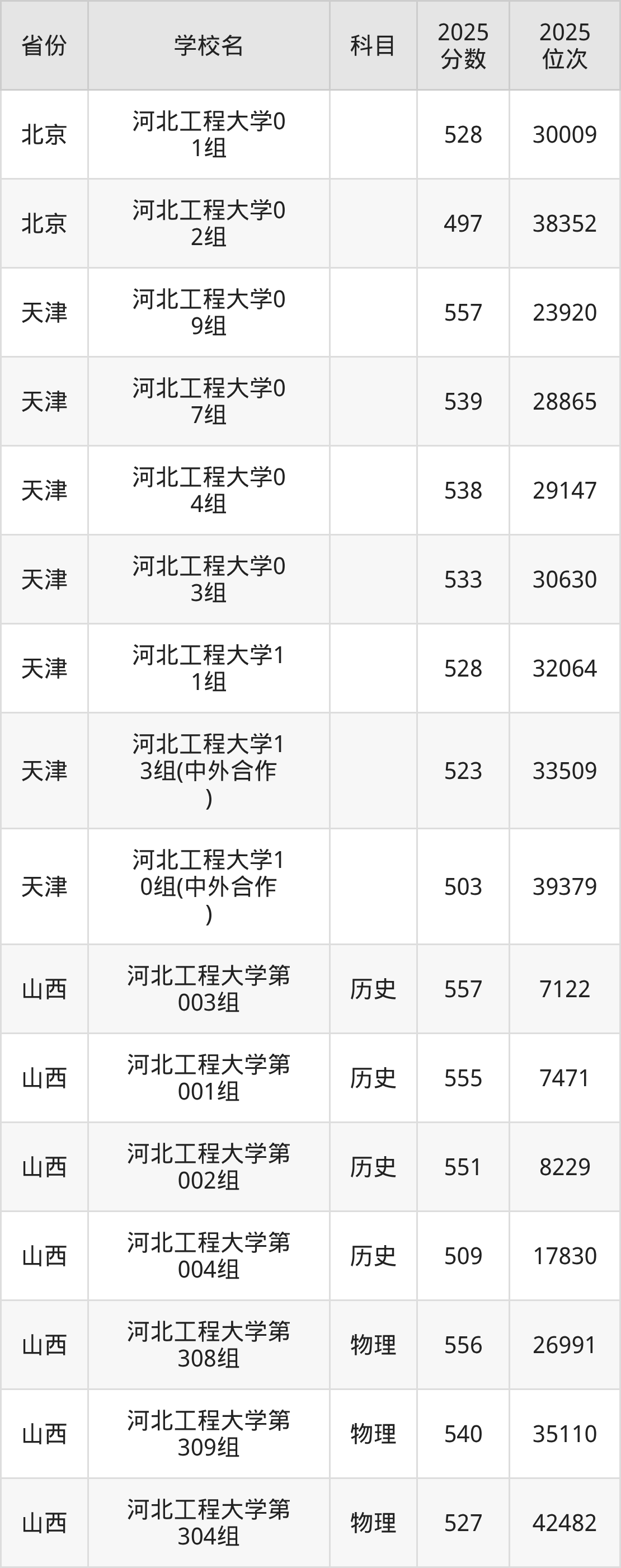 | 河北工程大学( 地方专项计划) | 历史 | 563 | 17236 |
