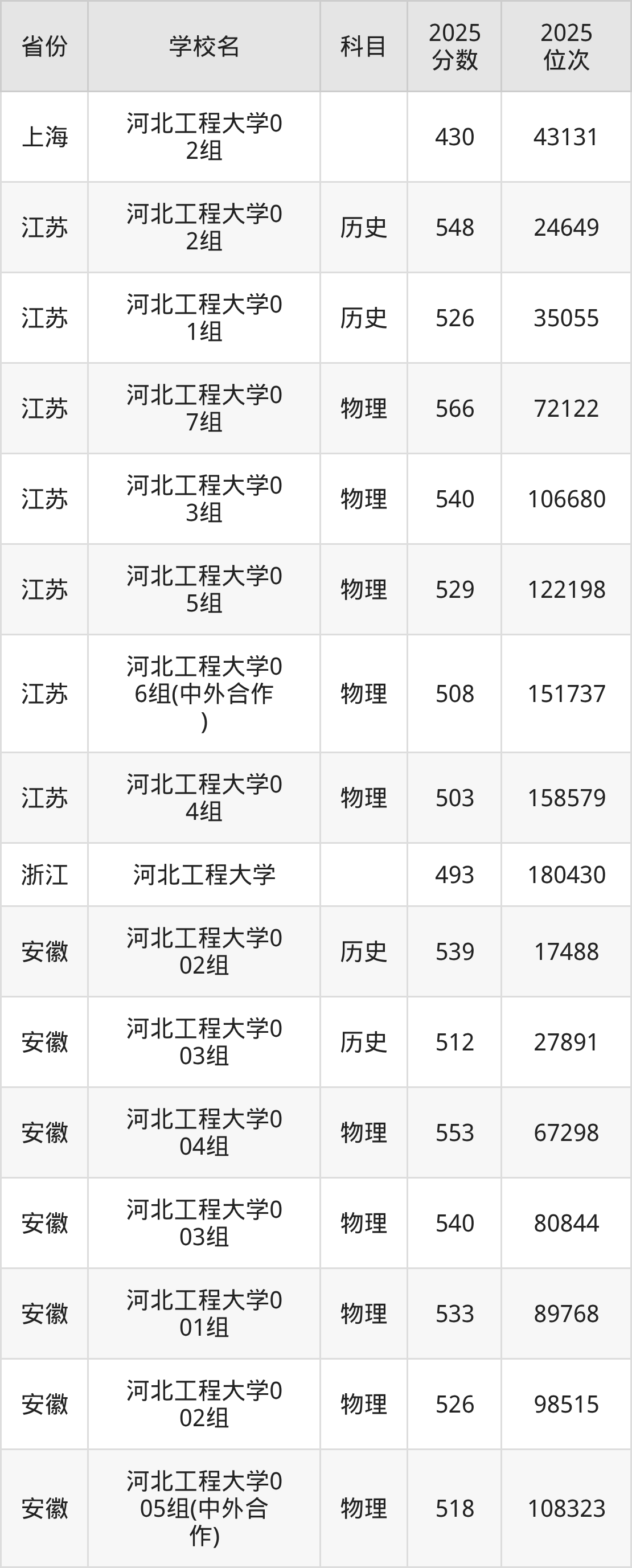 2025年河北工程大学历史类最低分538分(28223名)、物理类最低分506分(150409名)。