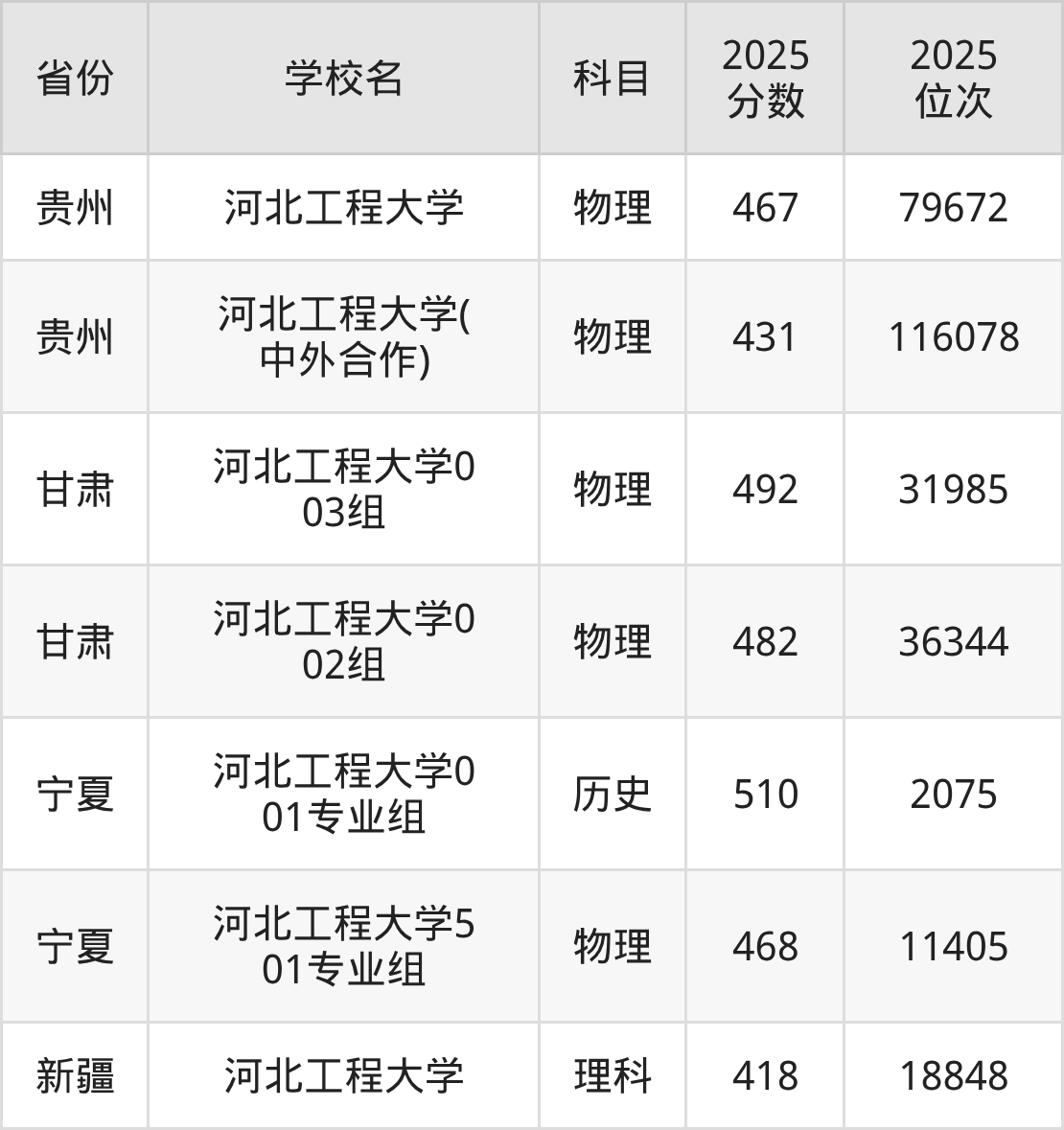 | 河北工程大学 | 物理 | 506 | 150409 |