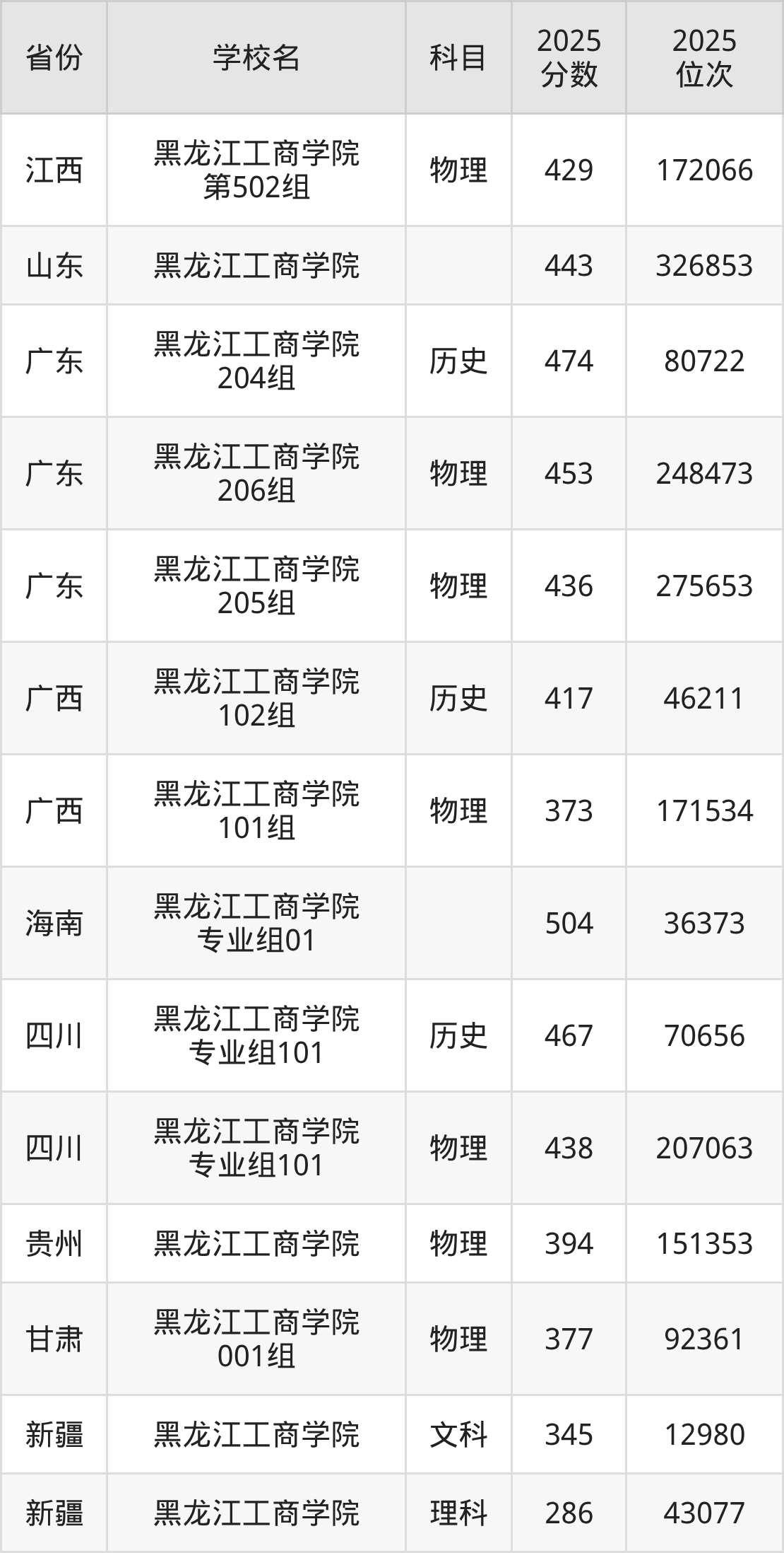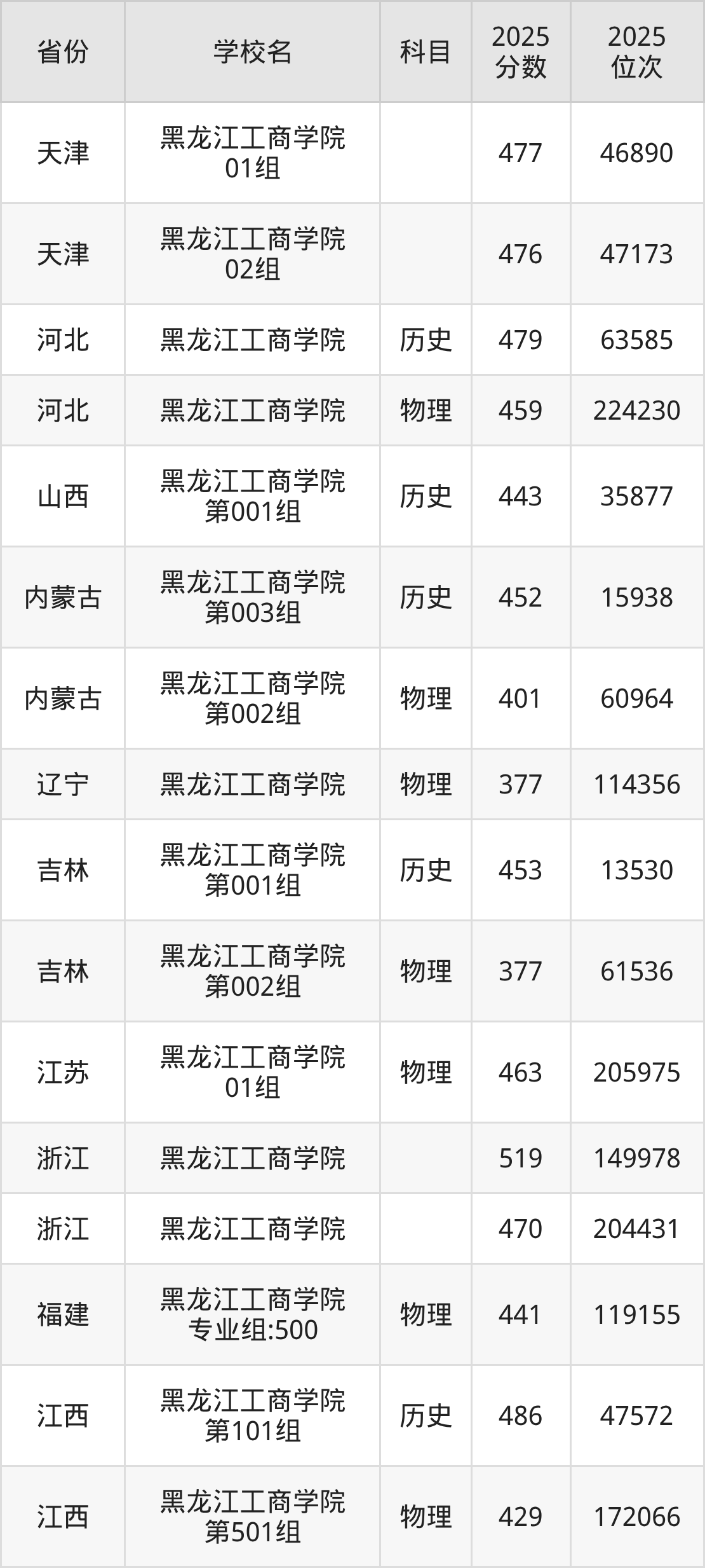 2025年黑龙江工商学院历史类最低分405分(22977名)、物理类最低分360分(85313名)。