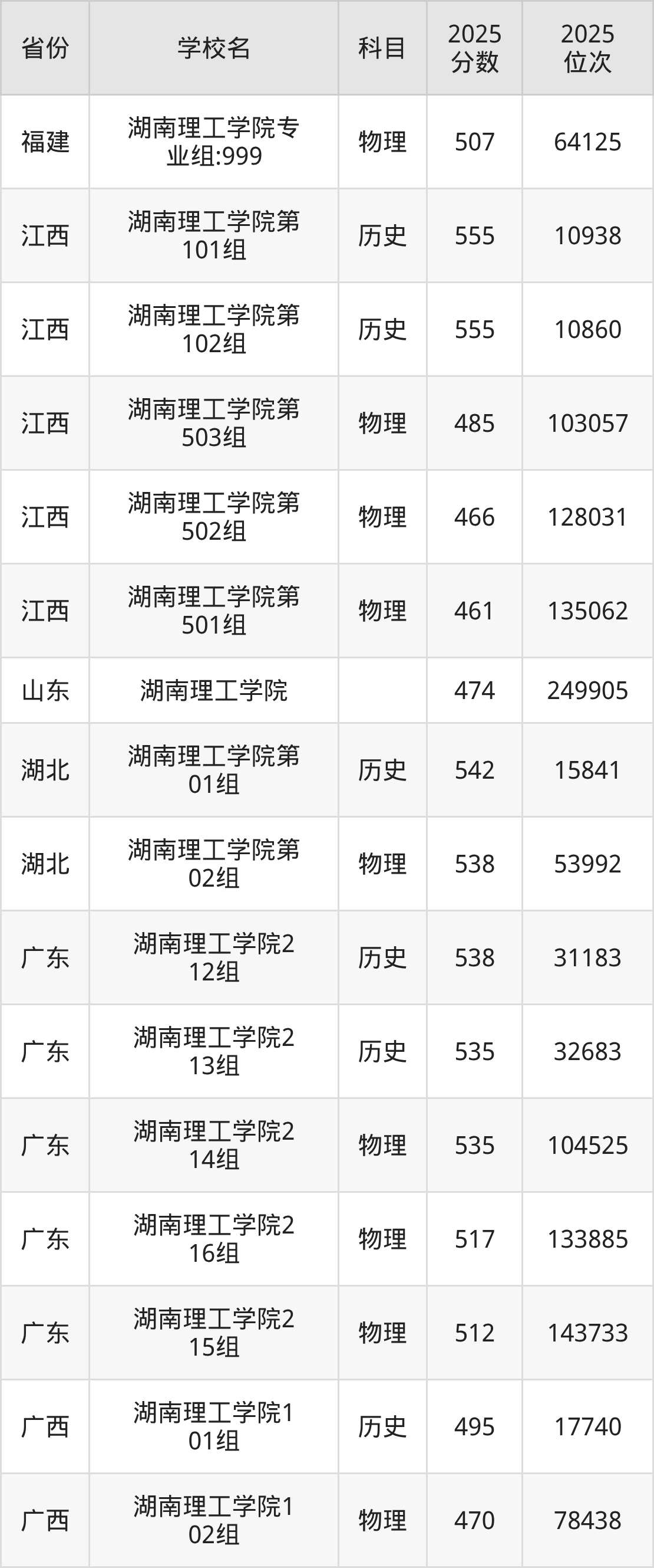 2025年湖南理工学院在省内分历史物理科目类录取,其中历史类最低分是518分、对应位次是20253名;物理类最低分是438分,对应位次是169715名。