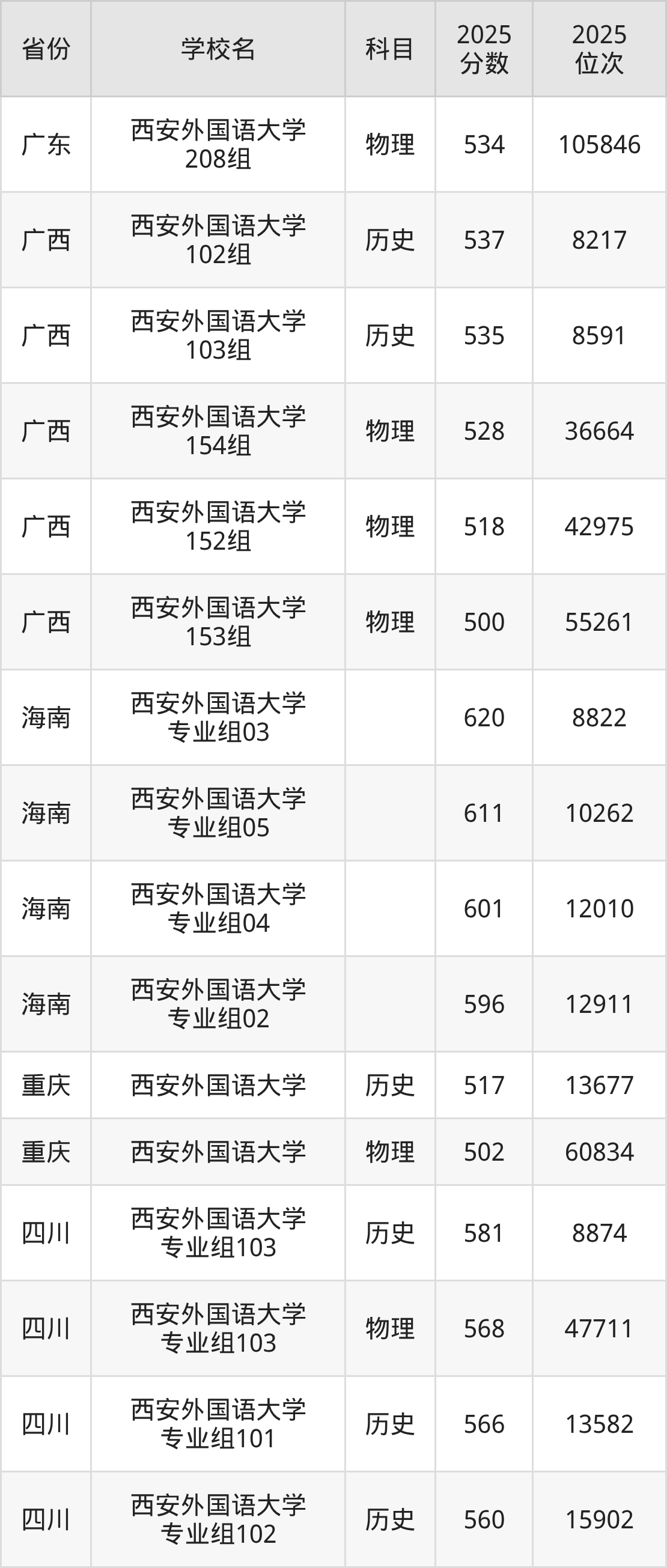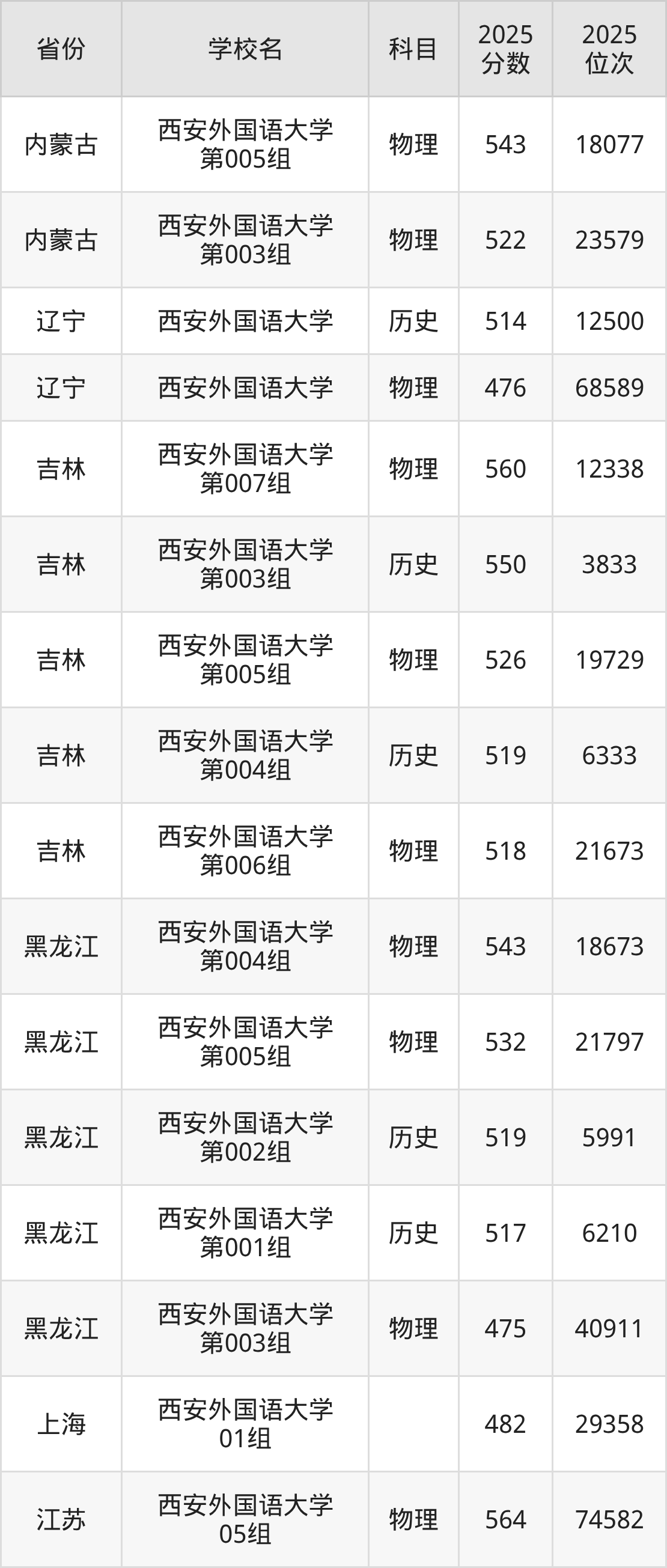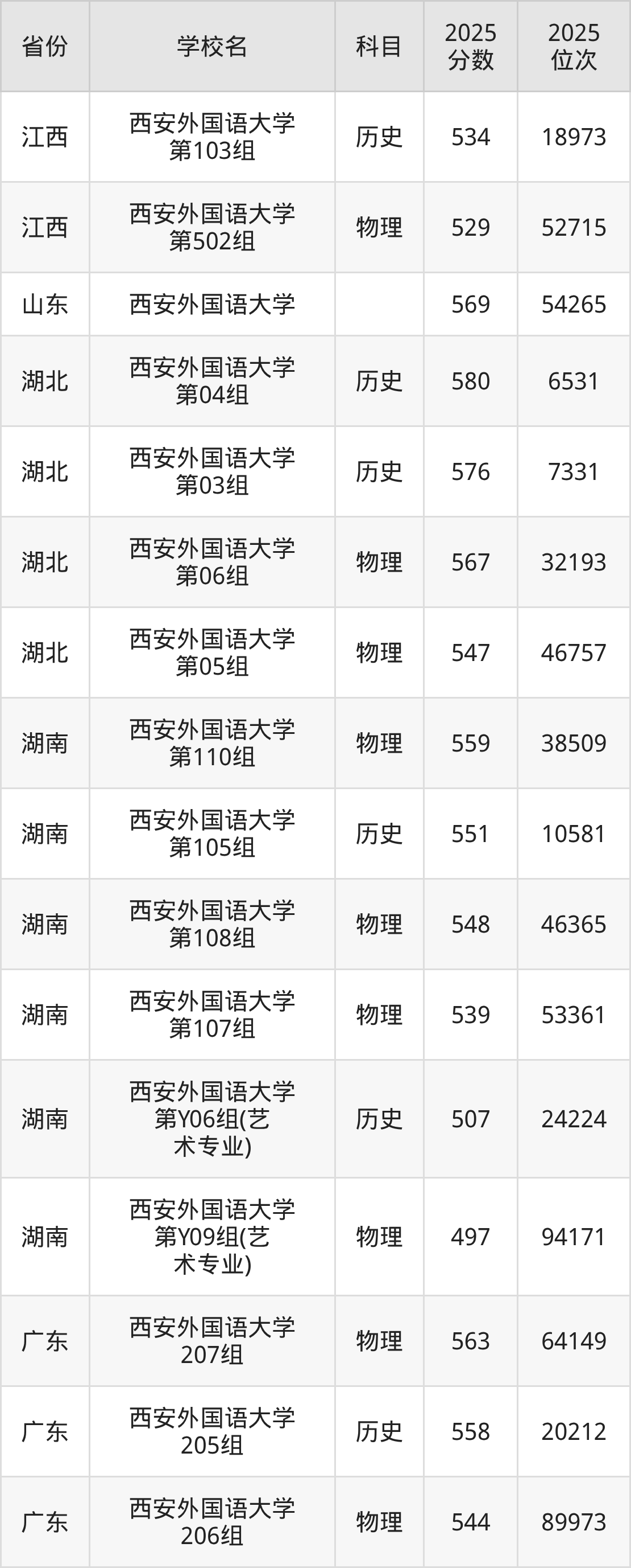 2025年西安外国语大学历史类最低分576分(7331名)、物理类最低分547分(46757名)。