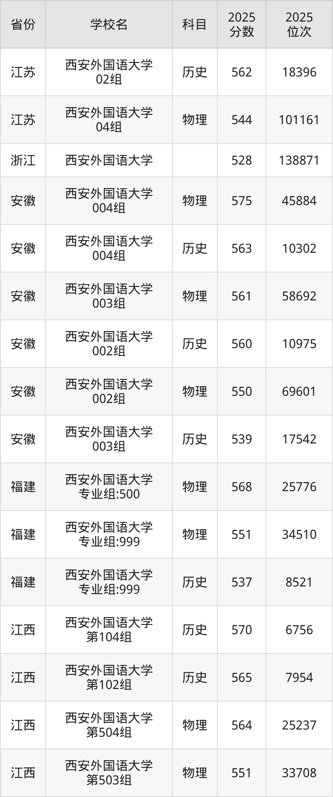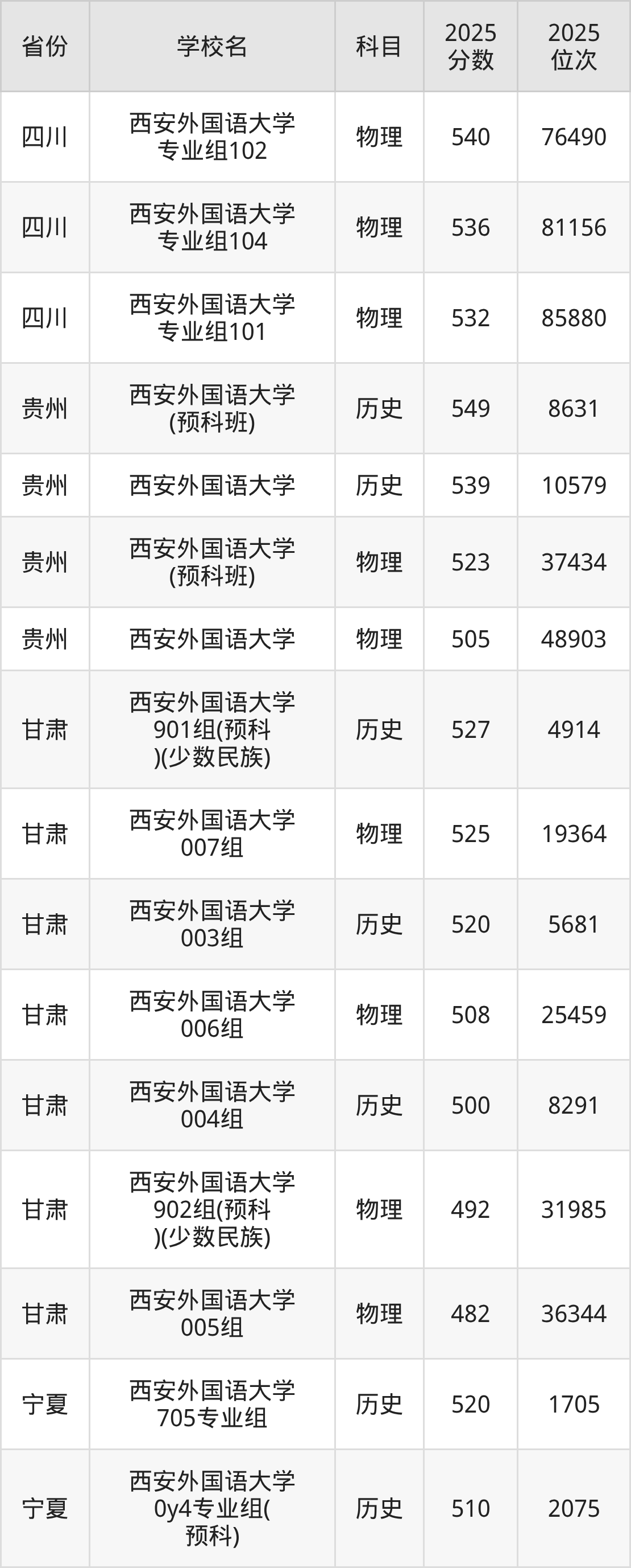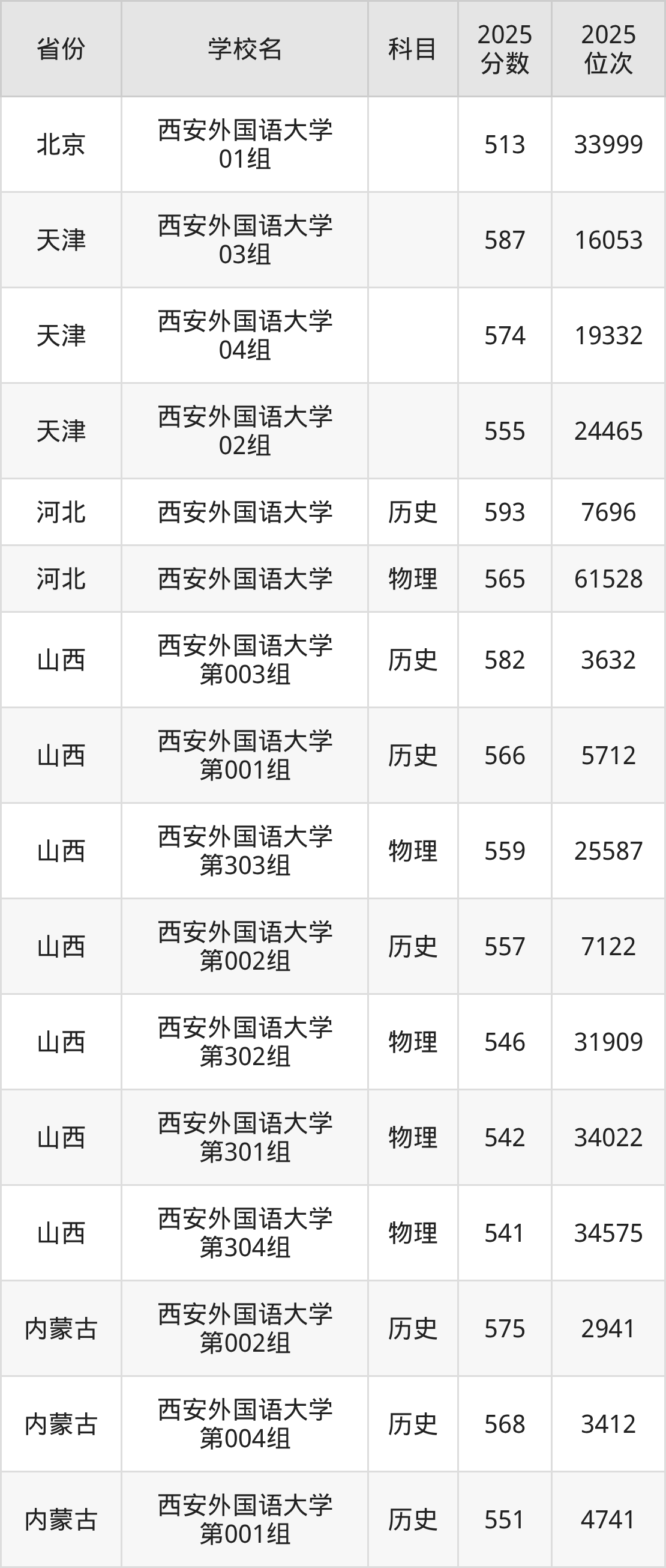 2025年西安外国语大学历史类最低分576分(7331名)、物理类最低分547分(46757名)。