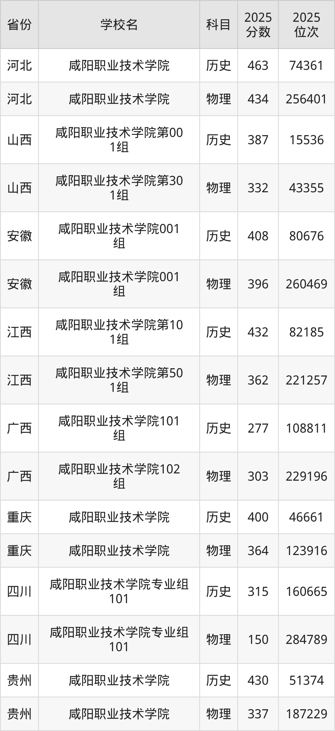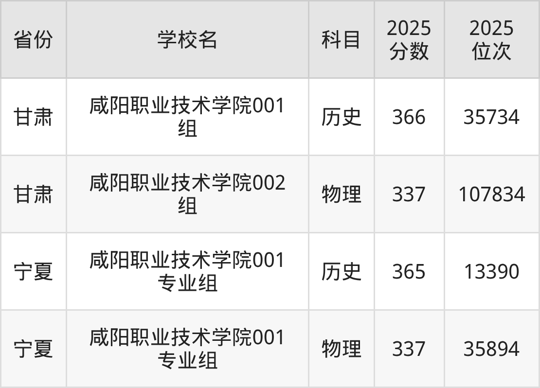 下面是咸阳职业技术学院2025年录取分数线各省汇总,一起来了解下吧。