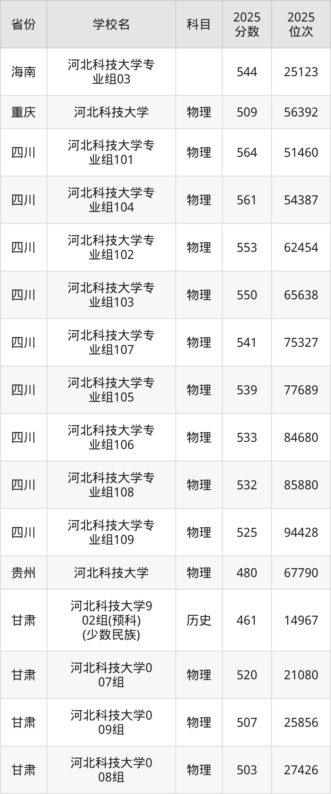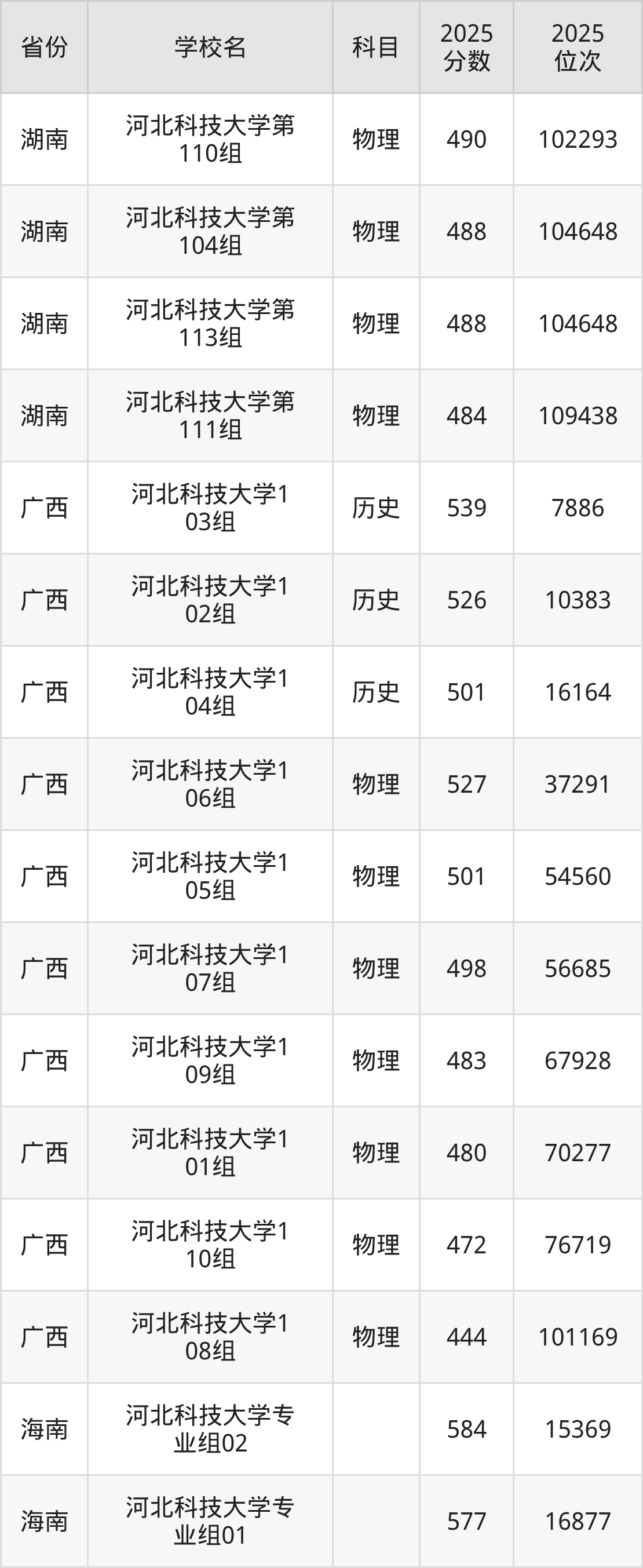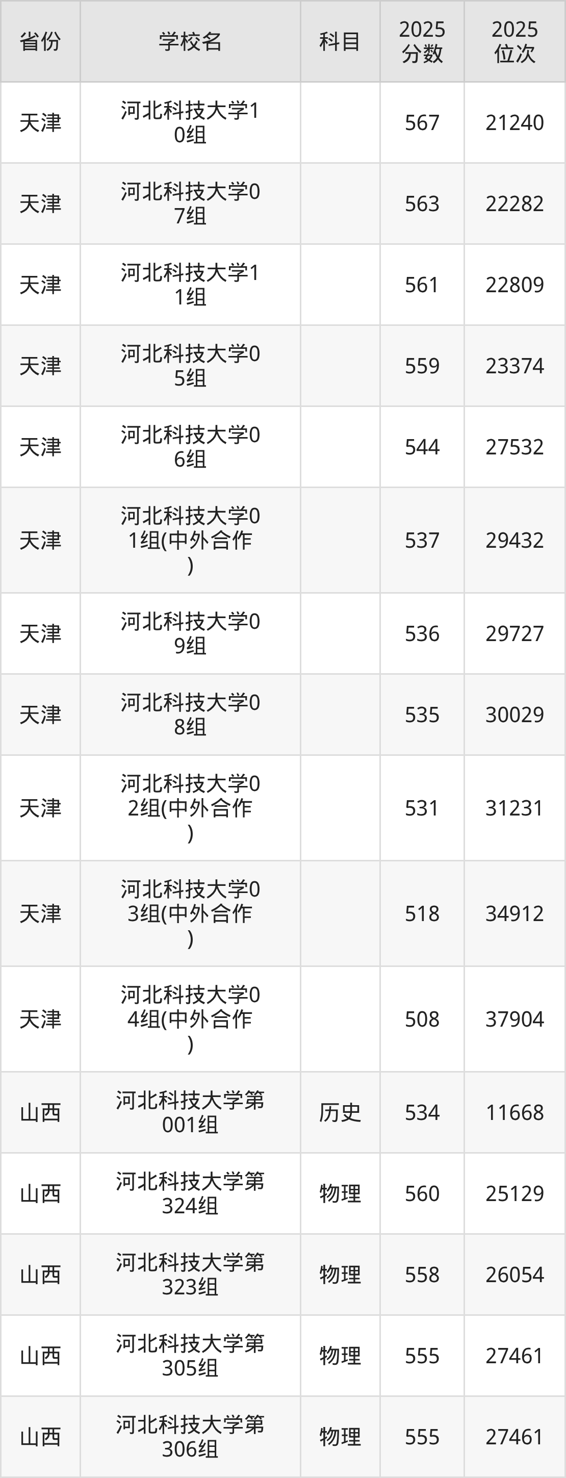 2025年河北科技大学历史类最低分546分(24485名)、物理类最低分506分(150409名)。