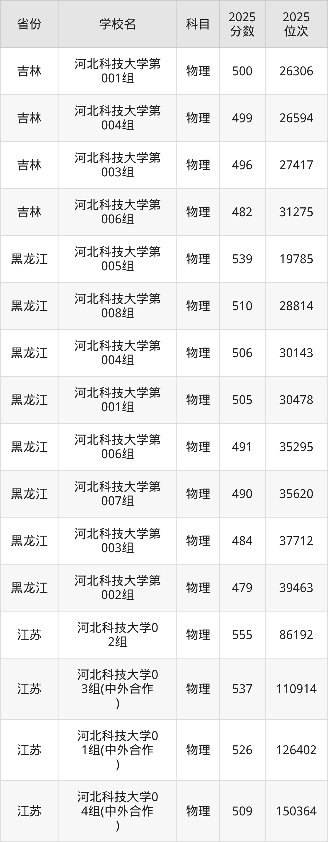 2025年河北科技大学在省内分历史物理科目类录取,其中历史类最低分是546分、对应位次是24485名;物理类最低分是506分,对应位次是150409名。