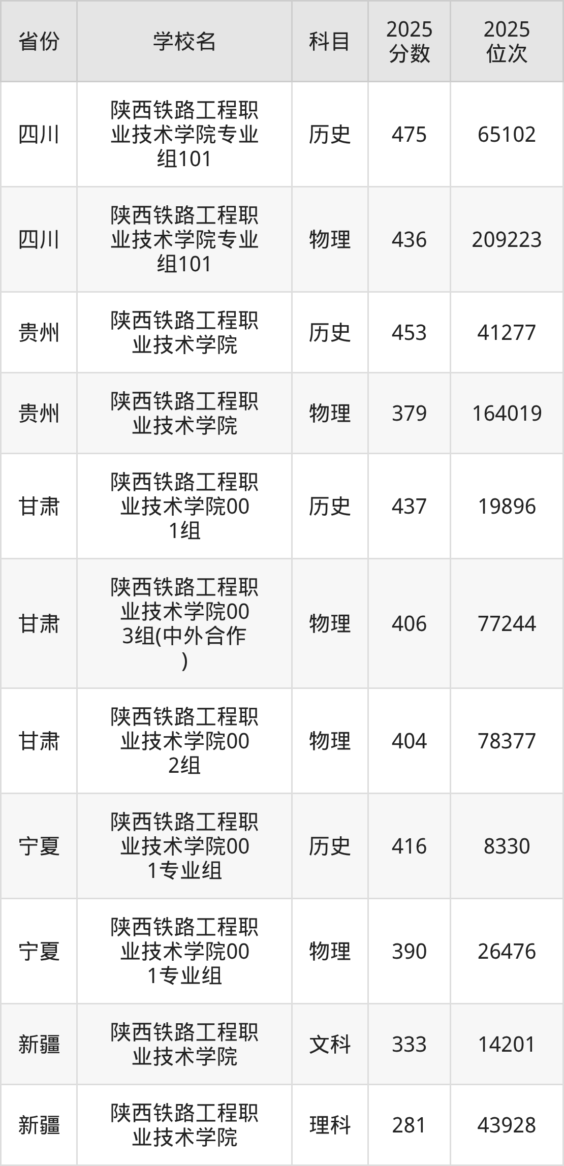 下面是陕西铁路工程职业技术学院2025年录取分数线各省汇总,一起来了解下吧。