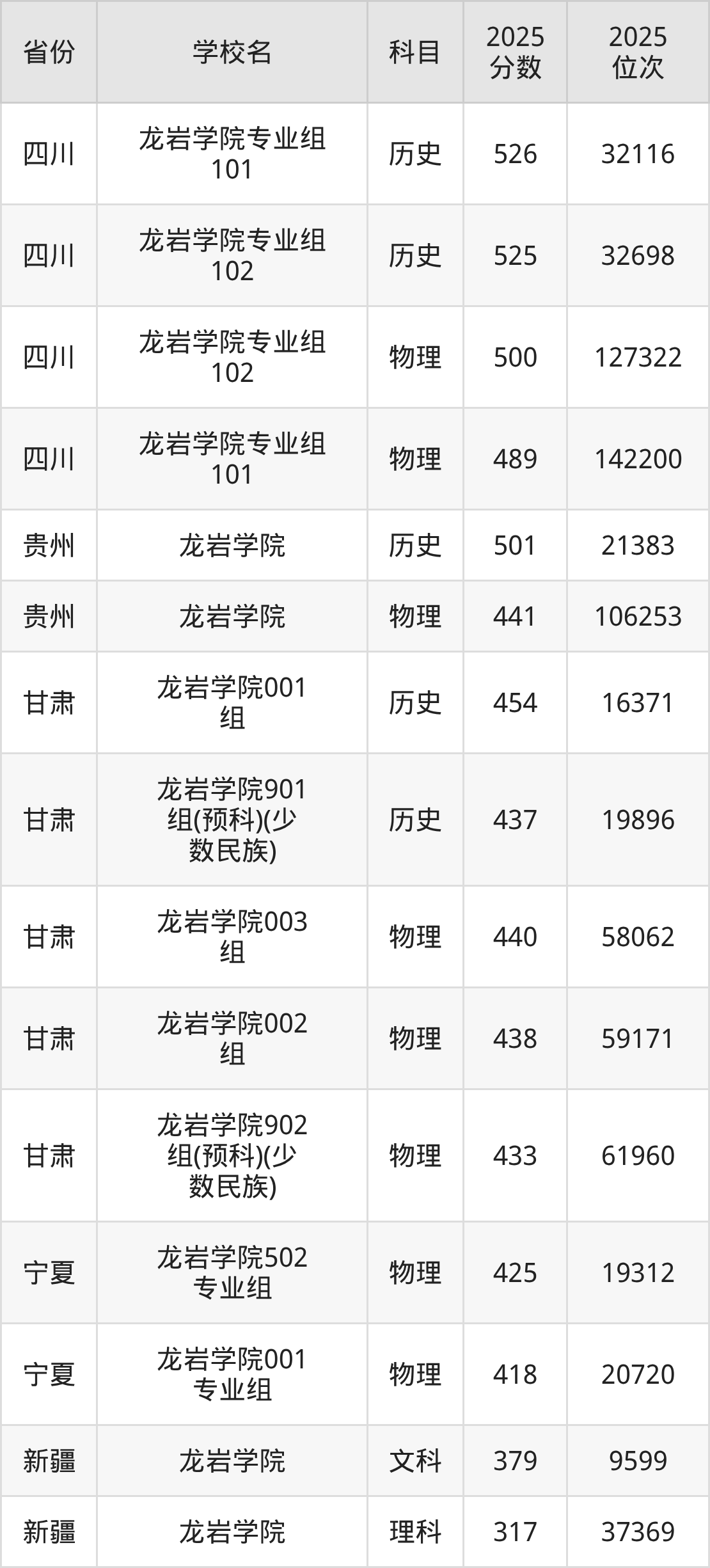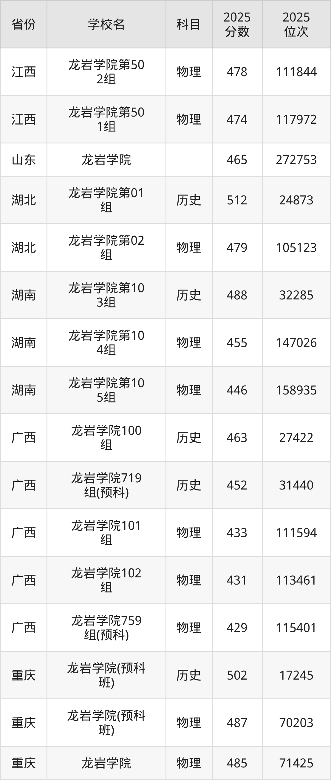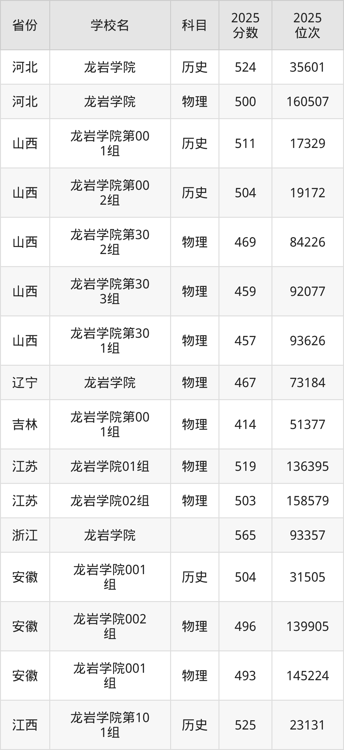 2025年龙岩学院历史类最低分486分(17496名)、物理类最低分492分(76112名)。