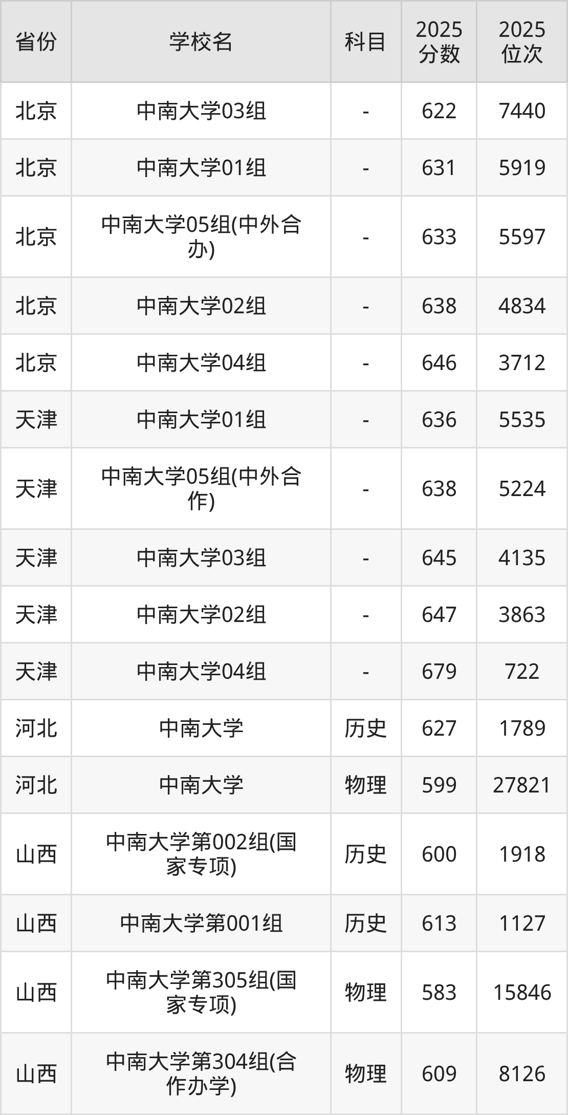 下面是中南大学2025年录取分数线各省汇总,一起来了解下吧。