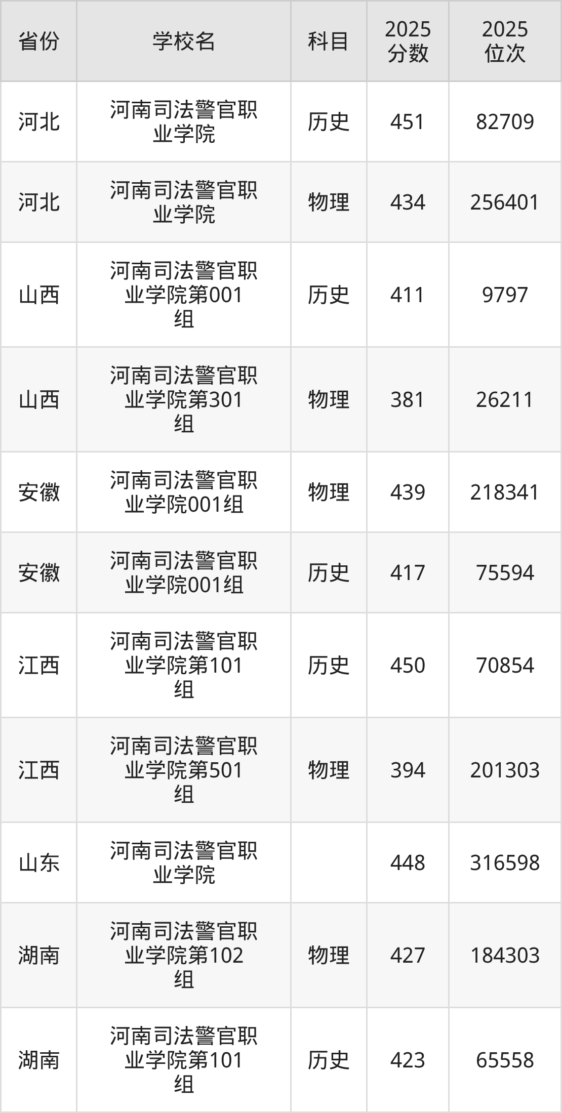 下面是河南司法警官职业学院2025年录取分数线各省汇总,一起来了解下吧。