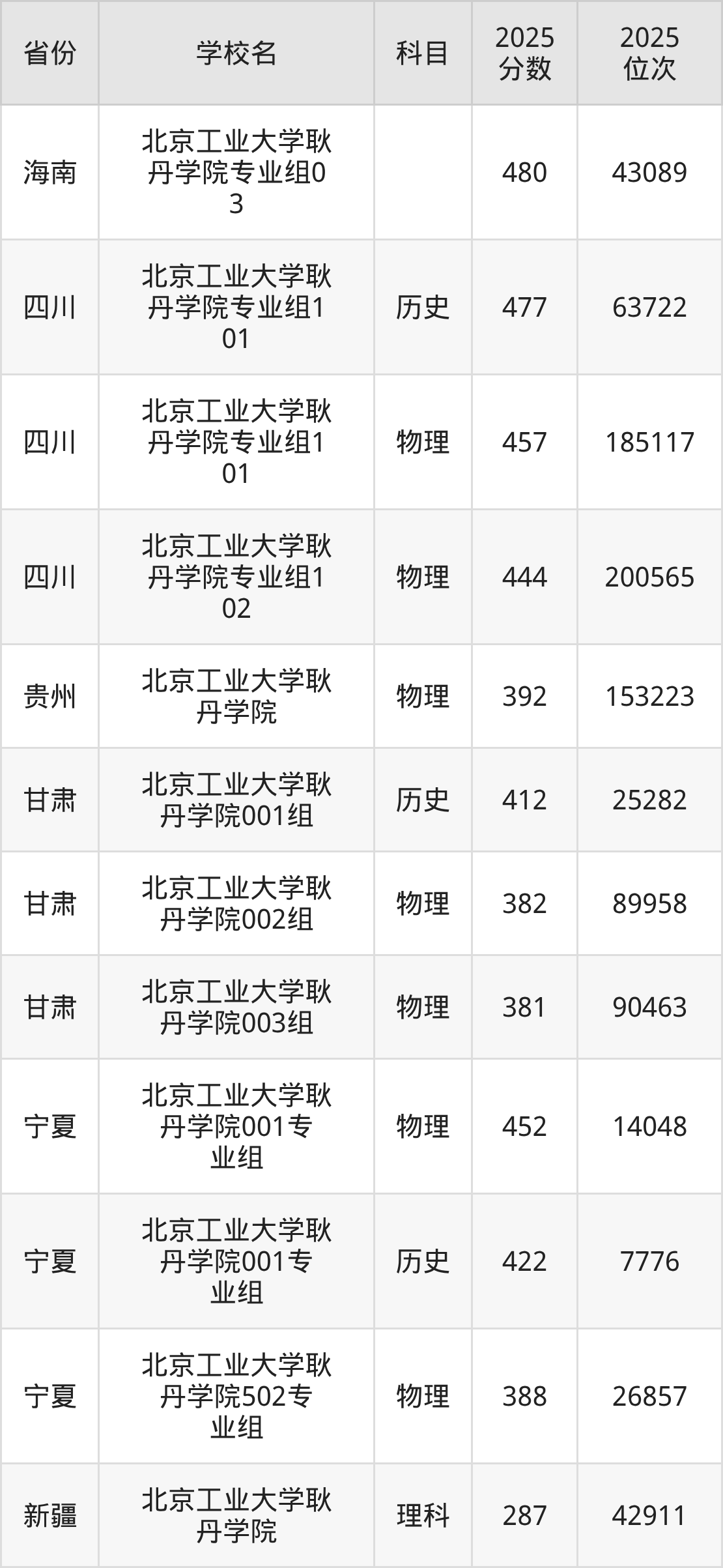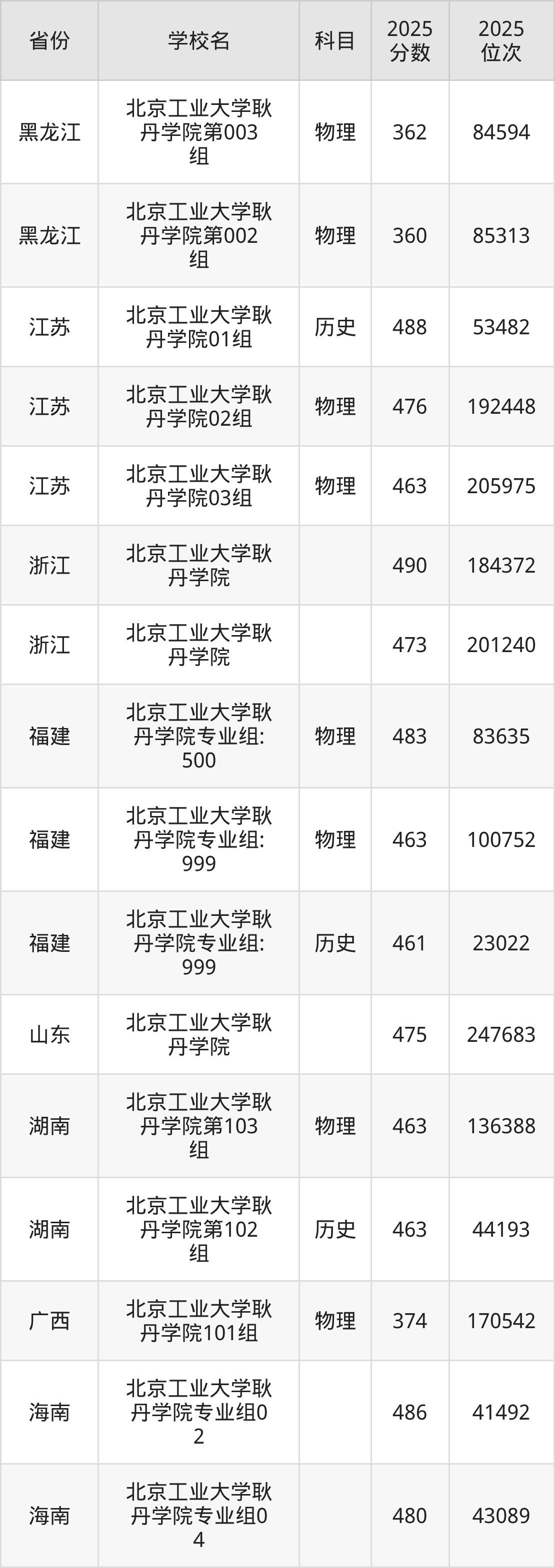 下面是北京工业大学耿丹学院2025年录取分数线各省汇总,一起来了解下吧。