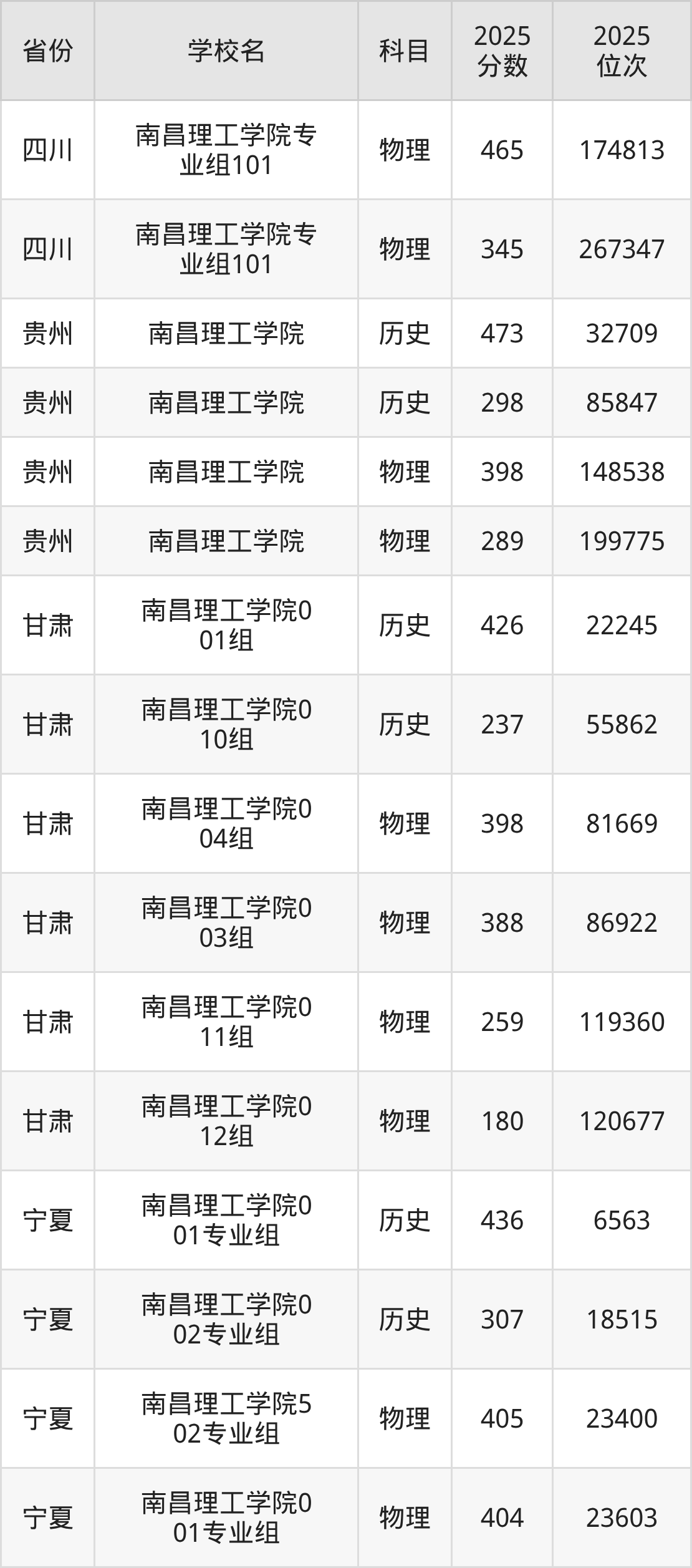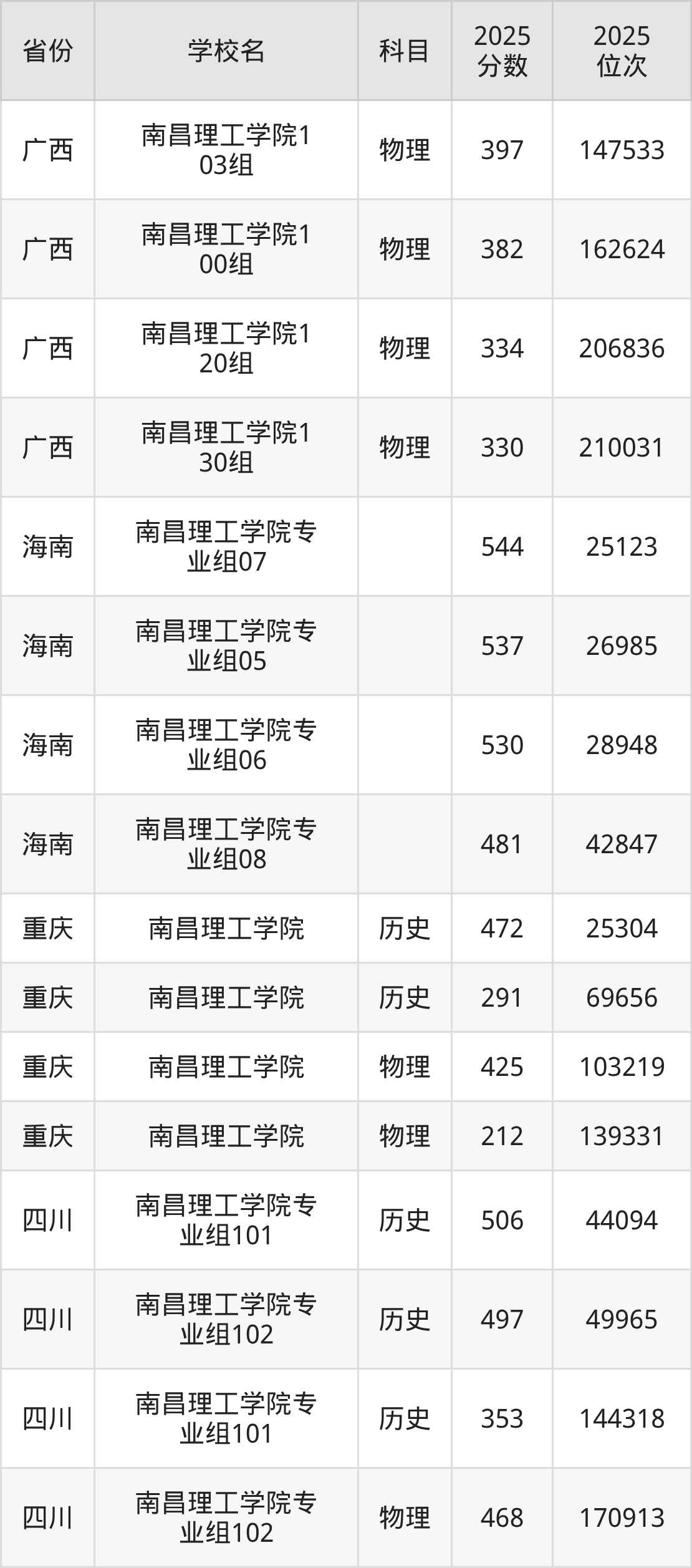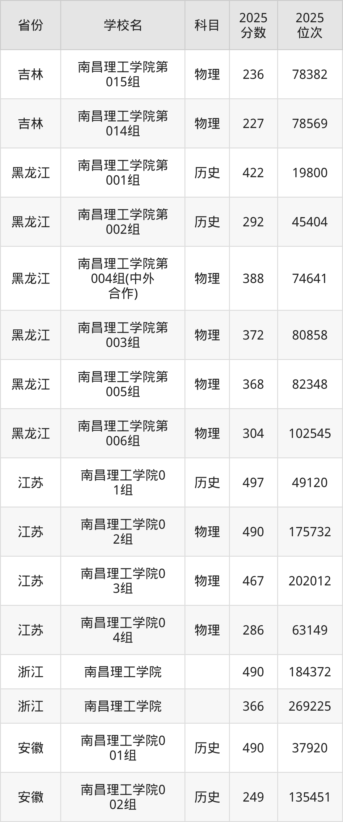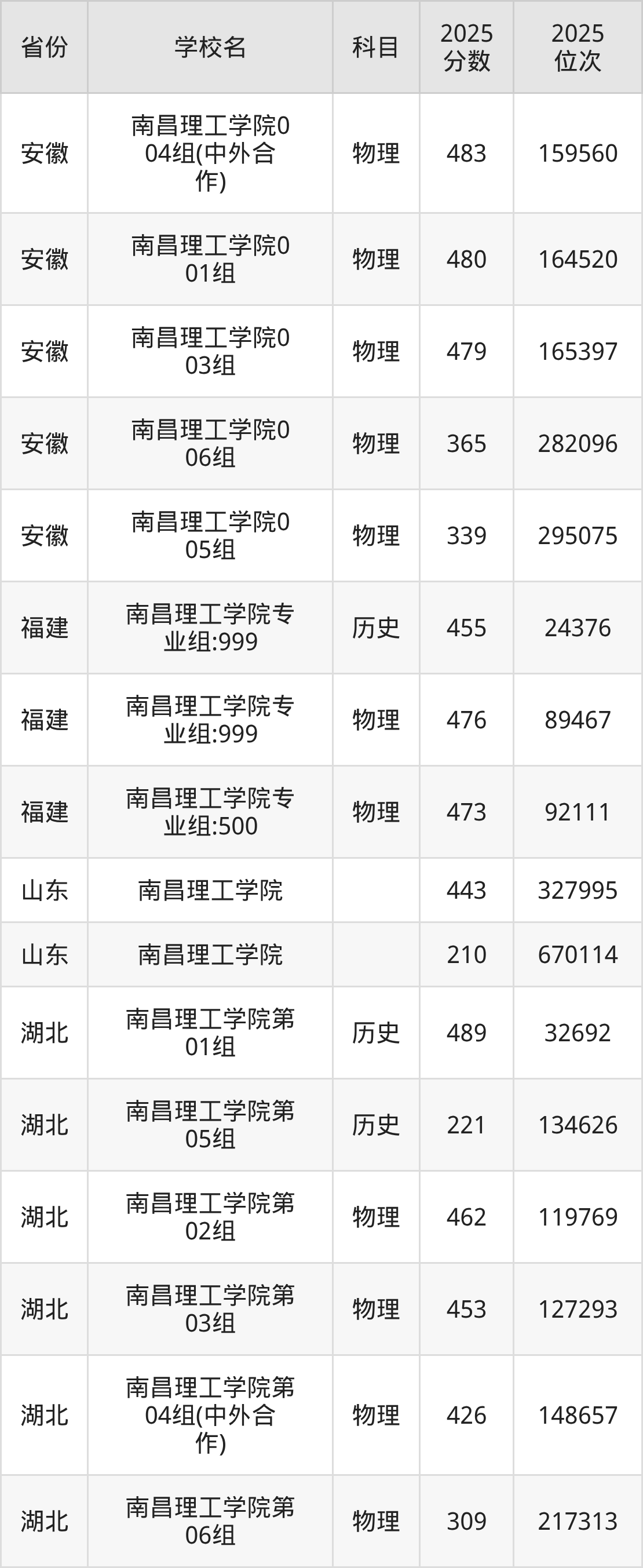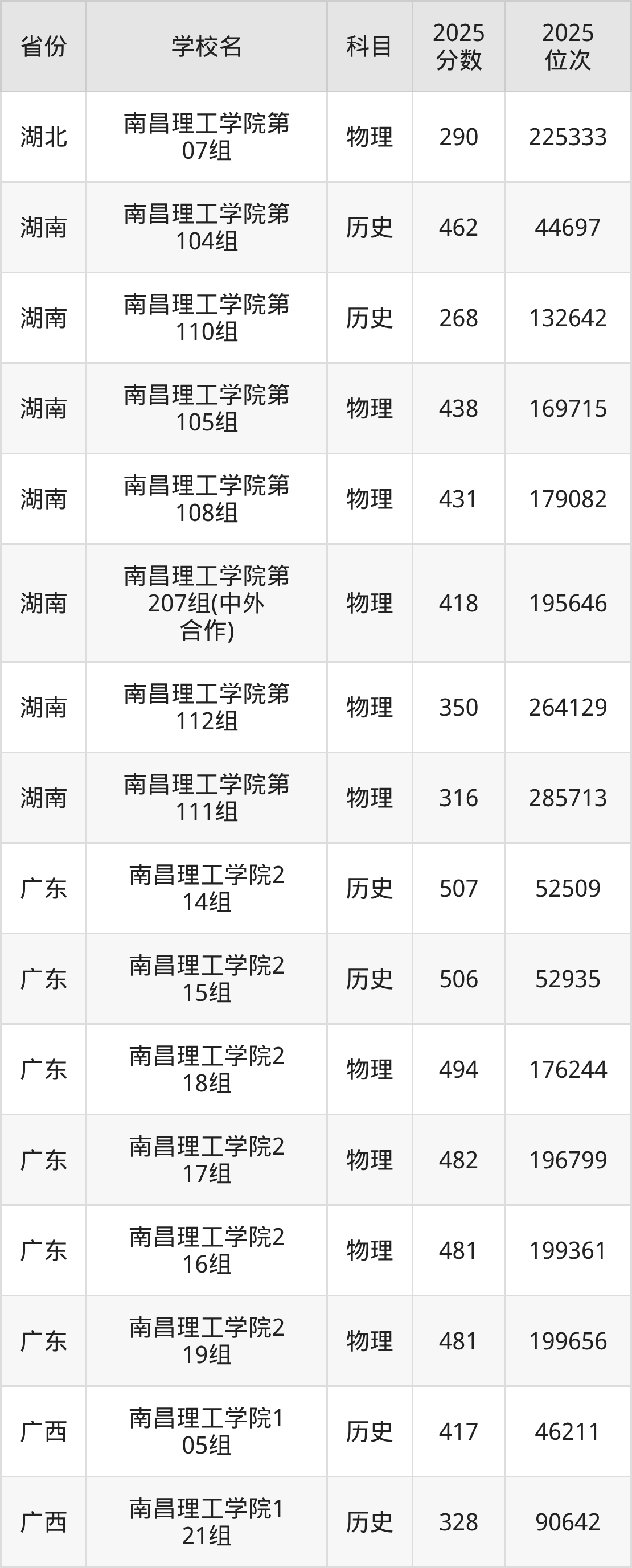 2025年南昌理工学院在省内分历史物理科目类录取,其中历史类最低分是332分、对应位次是152898名;物理类最低分是240分,对应位次是259802名。