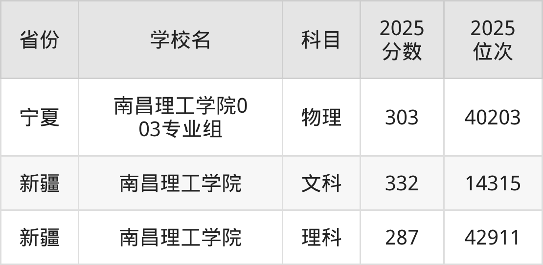 2025年南昌理工学院历史类最低分332分(152898名)、物理类最低分240分(259802名)。