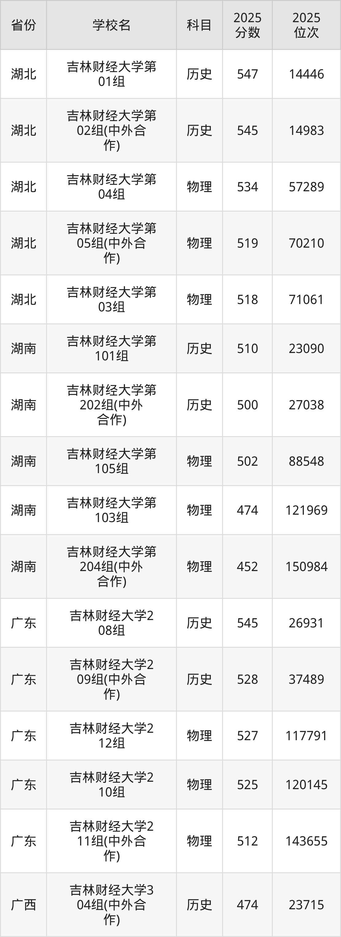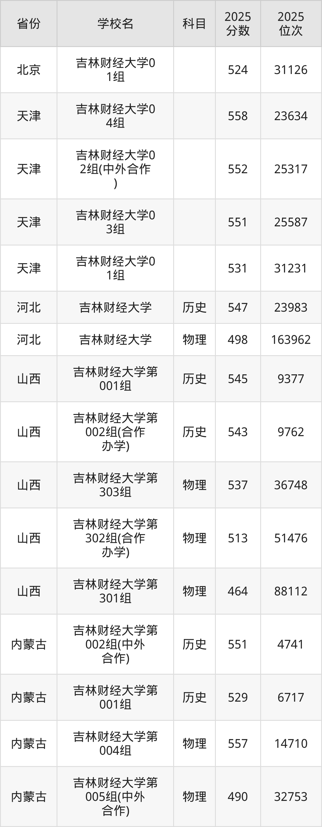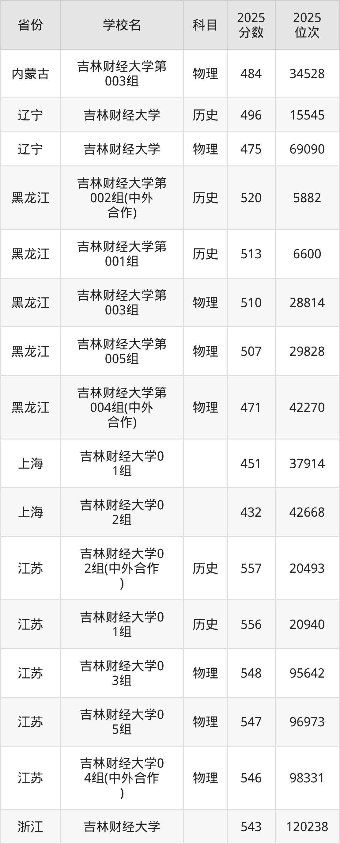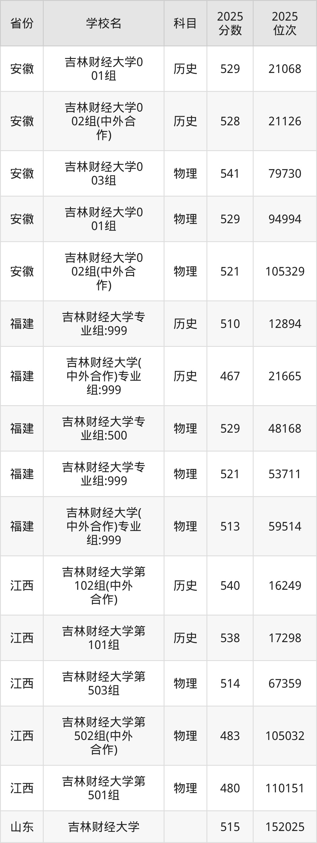 | 吉林财经大学第 003组(地方 专项) | 历史 | 535 | 5029 |