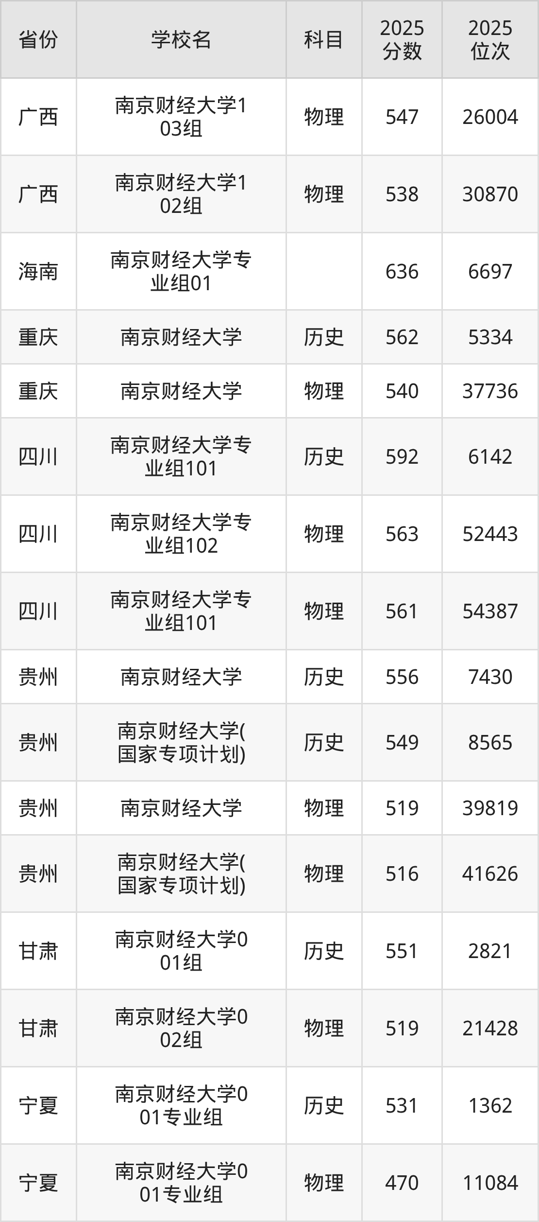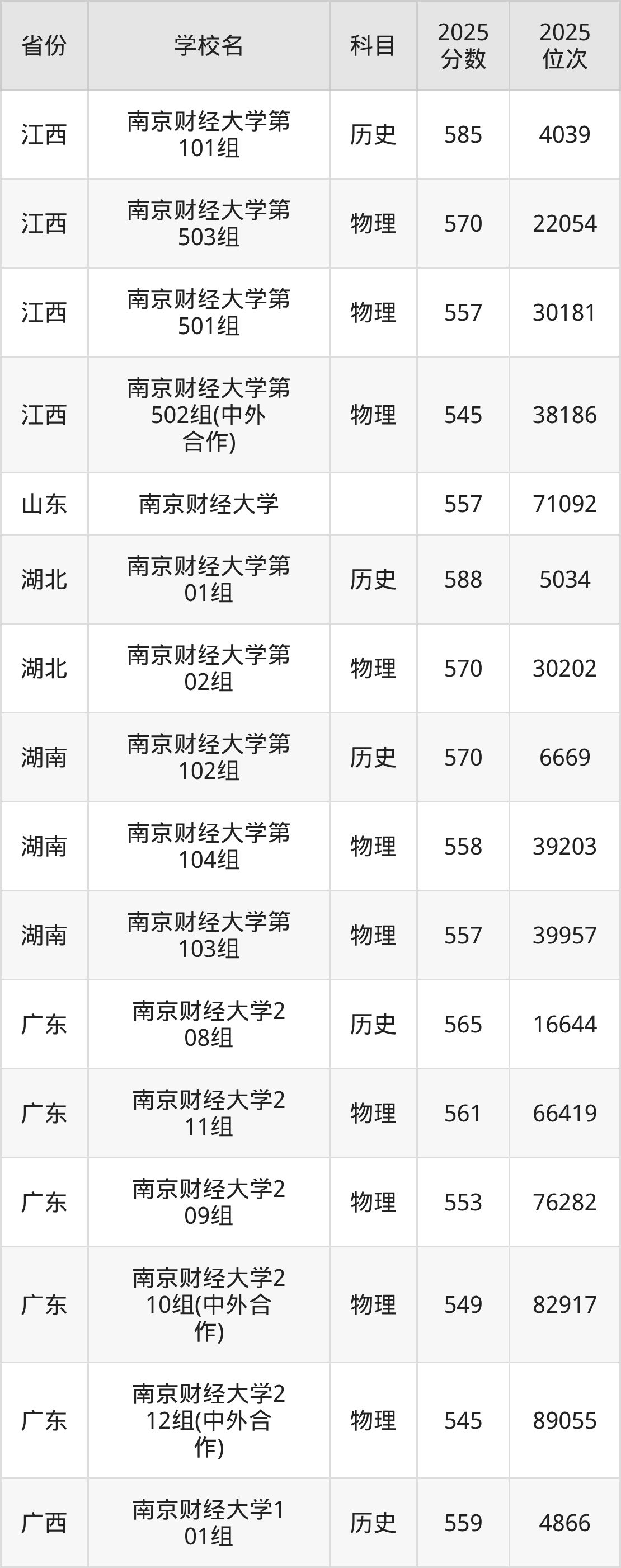 | 南京财经大学0 6组(中外合作 ) | 历史 | 557 | 20493 |