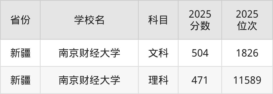 | 学校名 | 科目 | 2025 分数 | 2025 位次 |