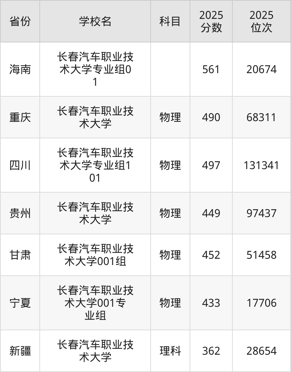 下面是长春汽车职业技术大学2025年录取分数线各省汇总,一起来了解下吧。