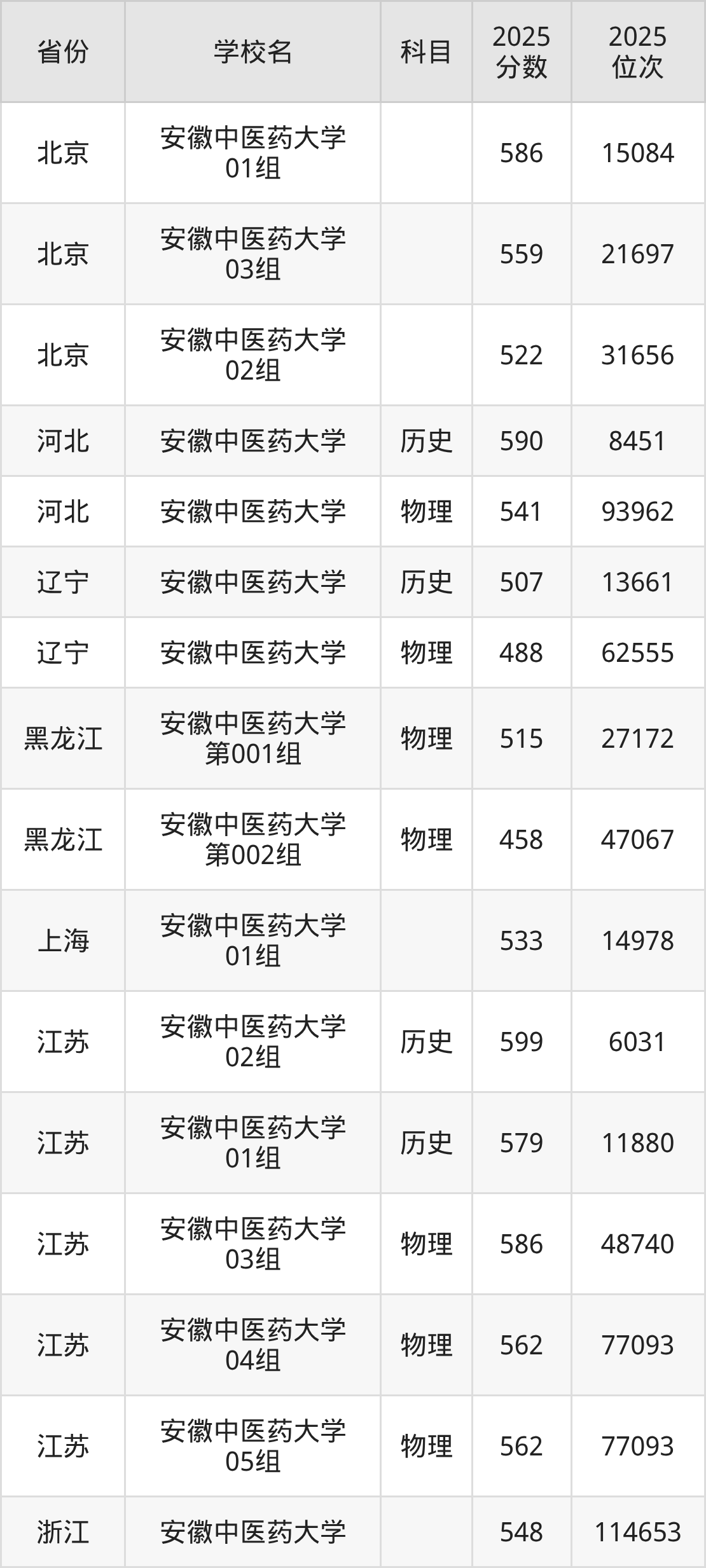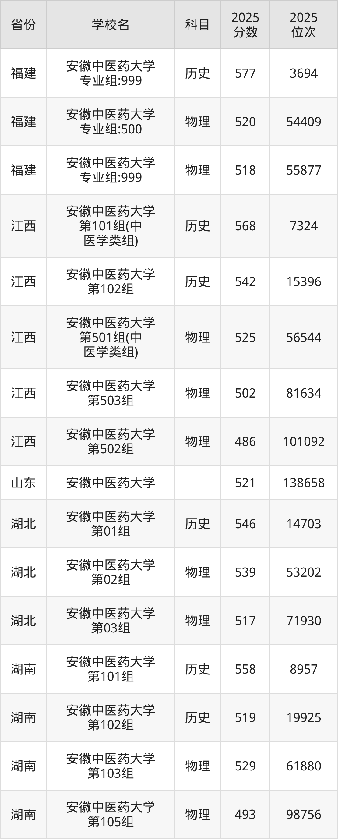 下面是安徽中医药大学2025年录取分数线各省汇总,一起来了解下吧。