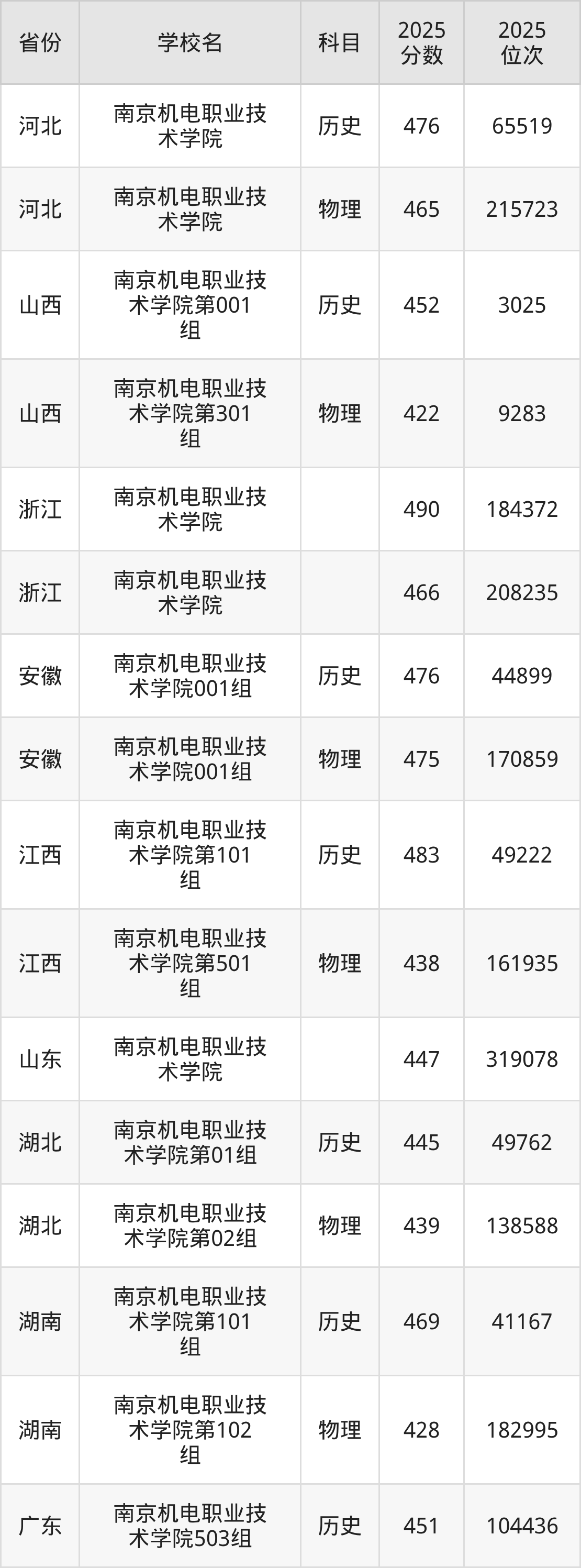 下面是南京机电职业技术学院2025年录取分数线各省汇总,一起来了解下吧。