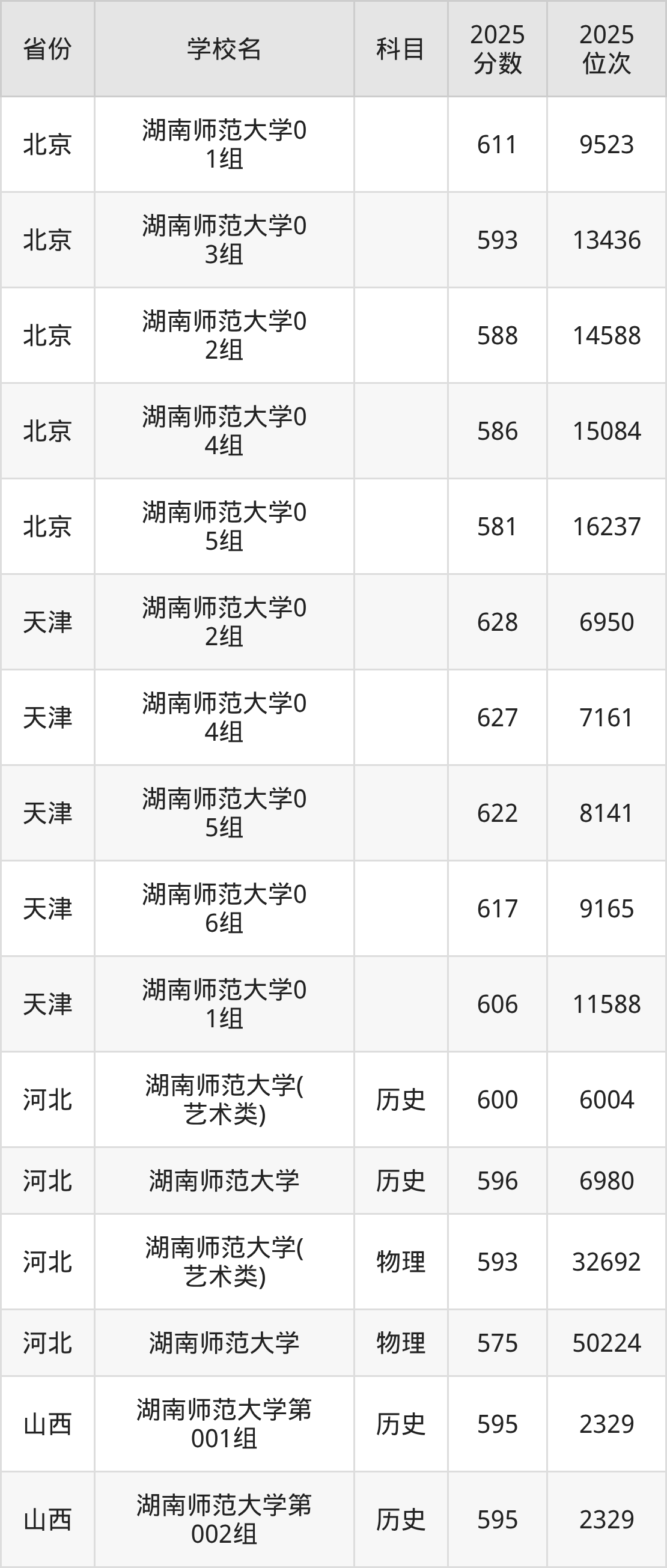 下面是湖南师范大学2025年录取分数线各省汇总,一起来了解下吧。