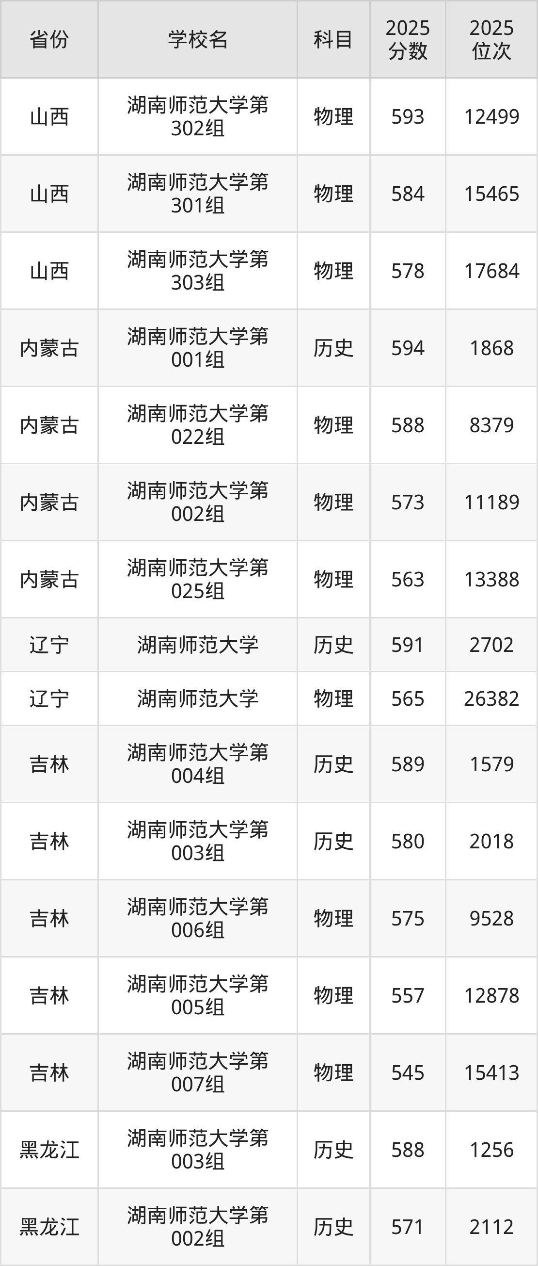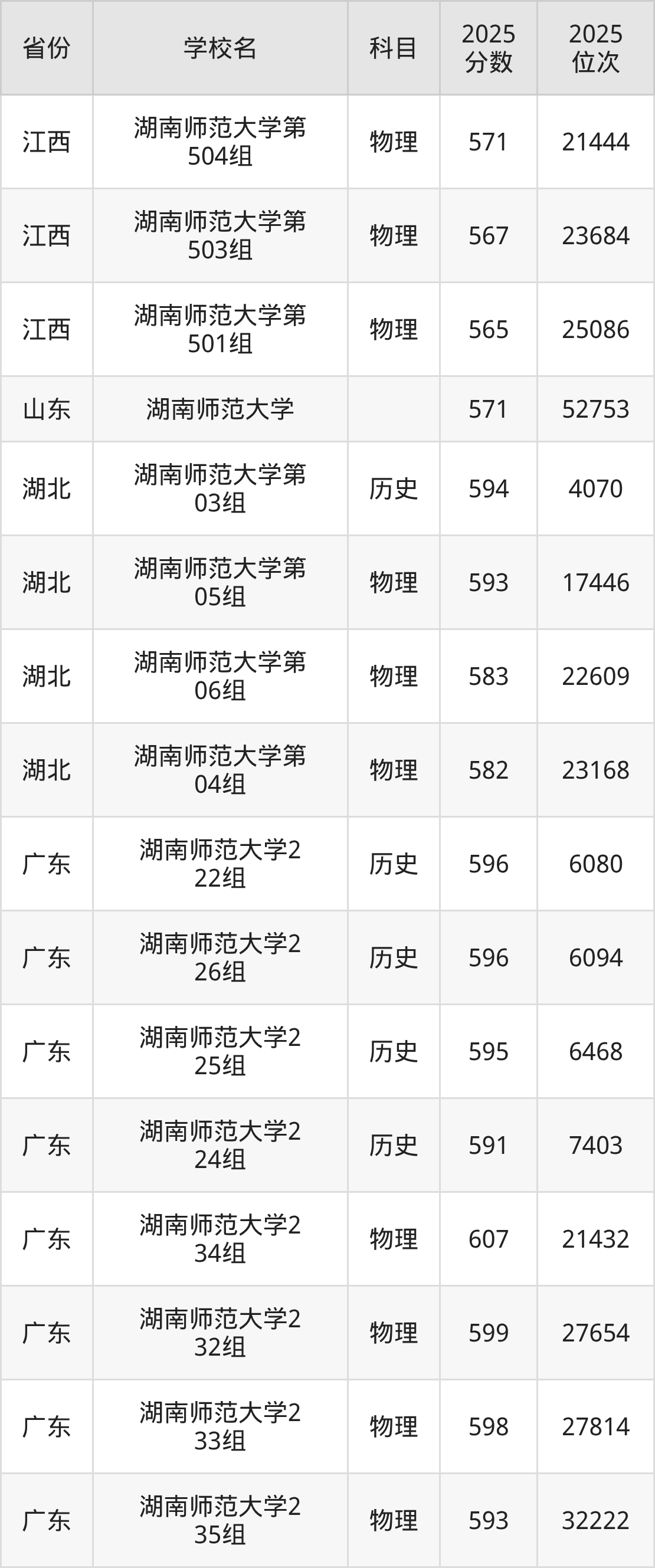 | 湖南师范大学第 473组(地方 专项) | 物理 | 594 | 18532 |