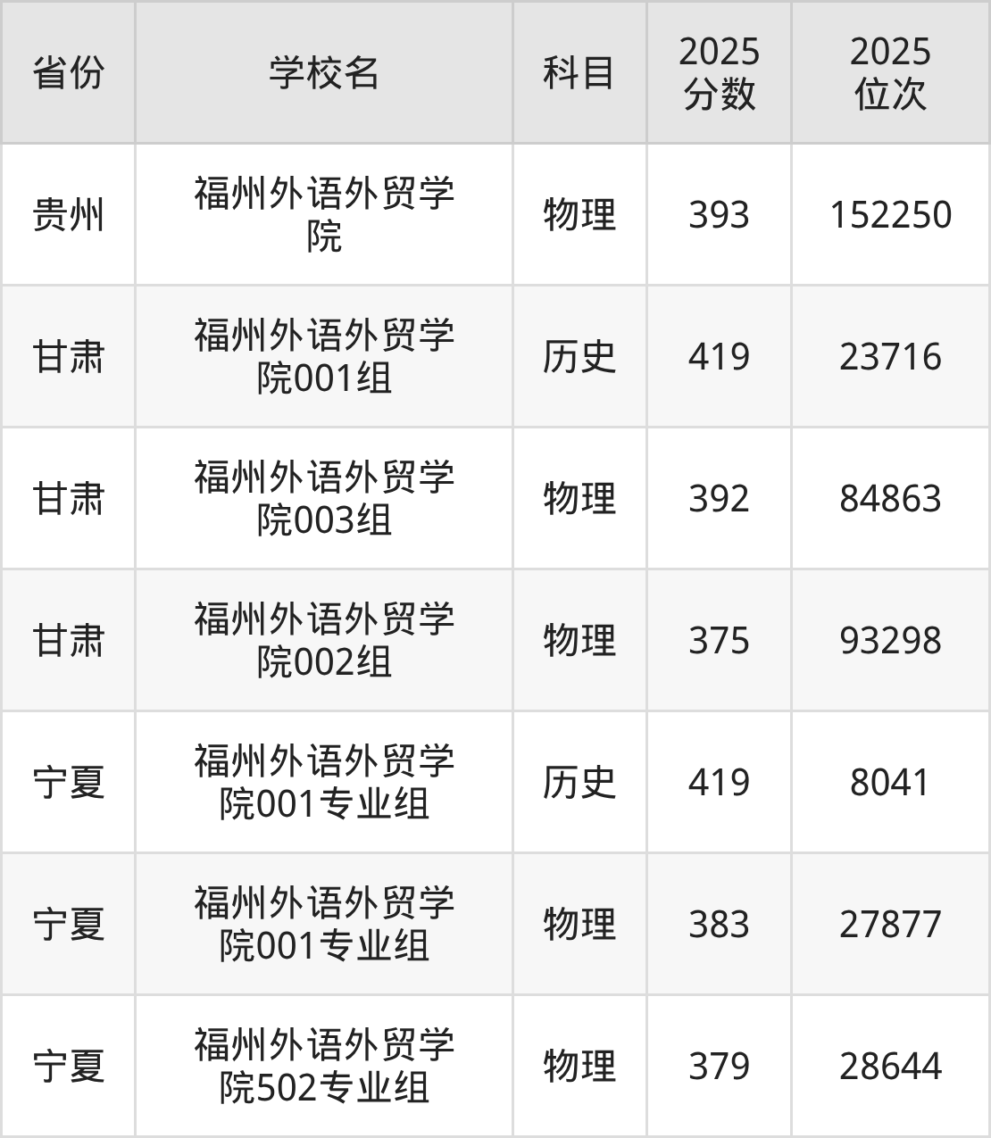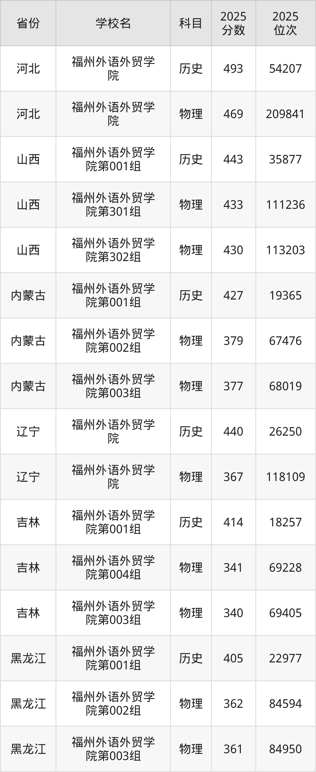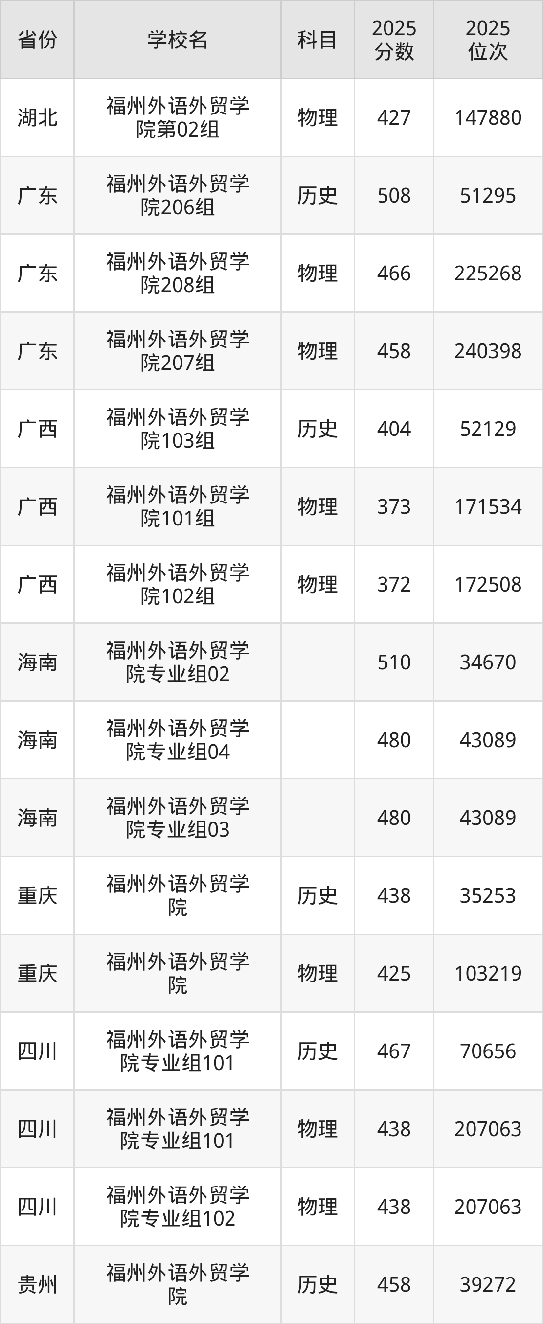 2025年福州外语外贸学院历史类最低分455分(24376名)、物理类最低分441分(119155名)。