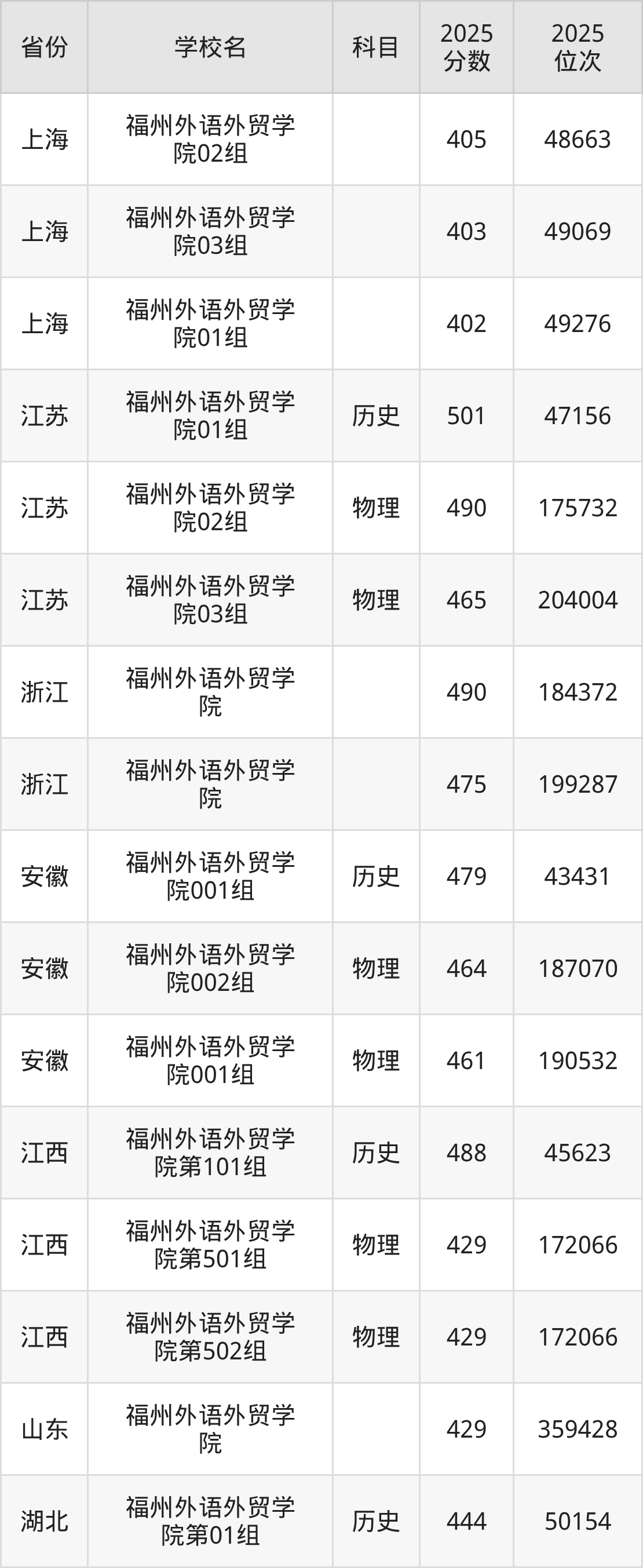 下面是福州外语外贸学院2025年录取分数线各省汇总,一起来了解下吧。