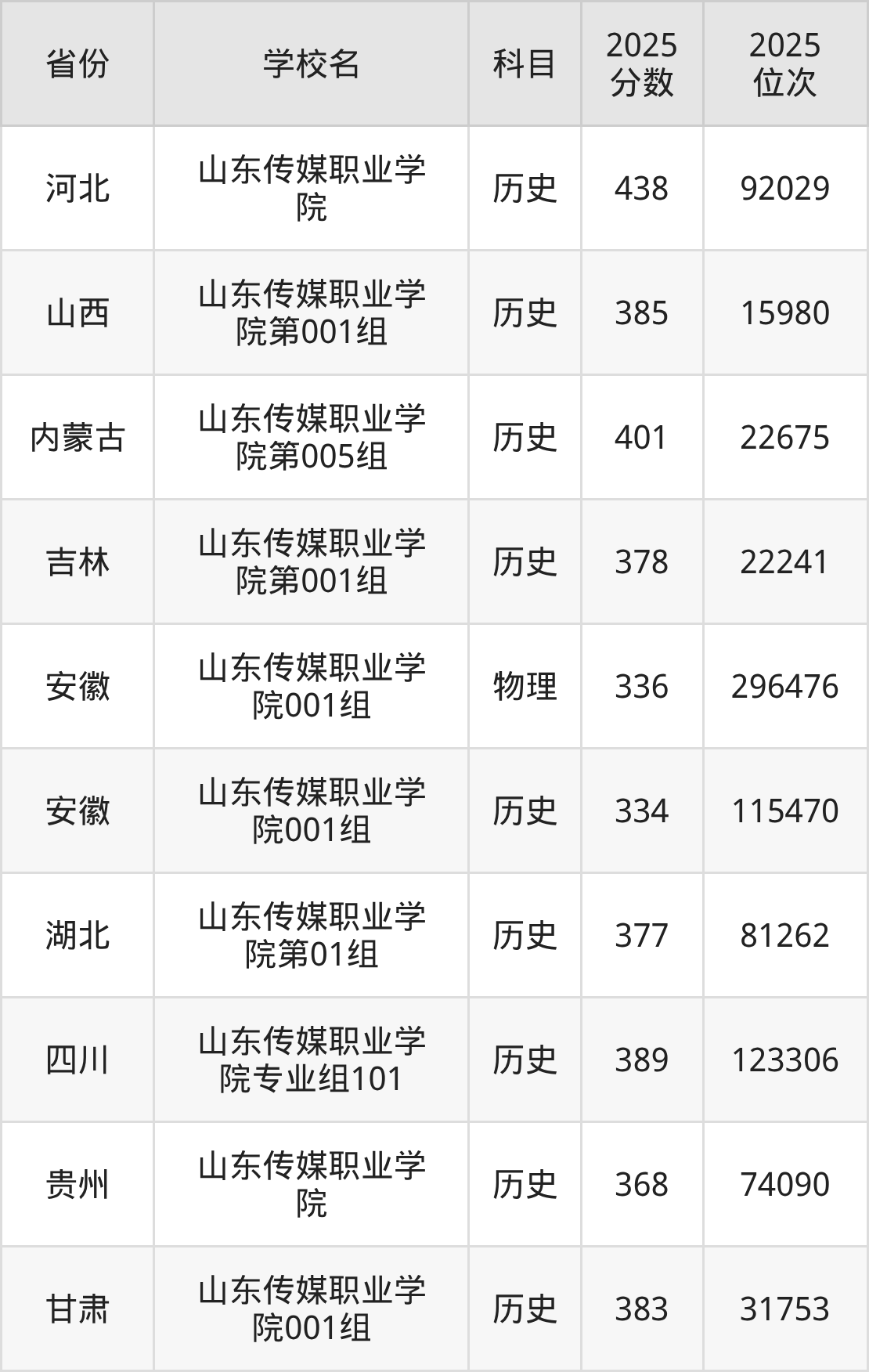 下面是山东传媒职业学院2025年录取分数线各省汇总,一起来了解下吧。