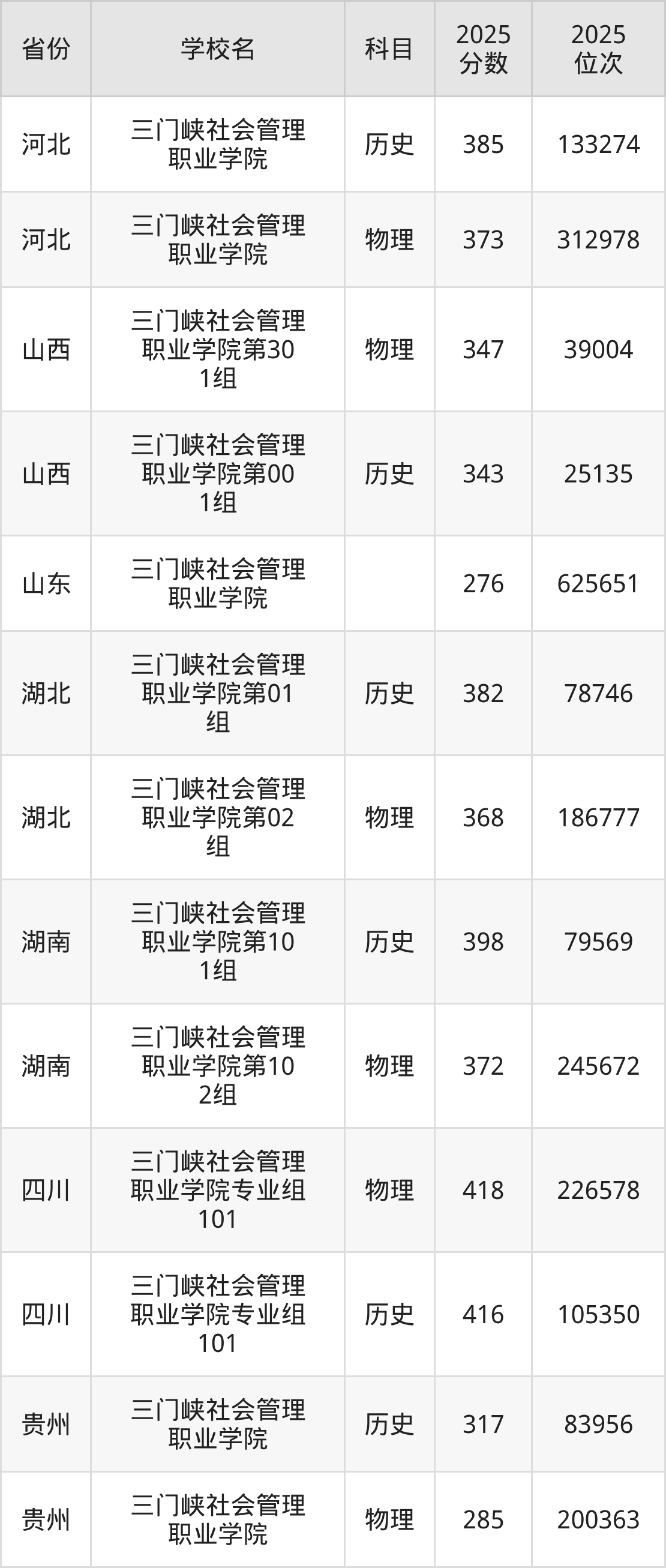 下面是三门峡社会管理职业学院2025年录取分数线各省汇总,一起来了解下吧。