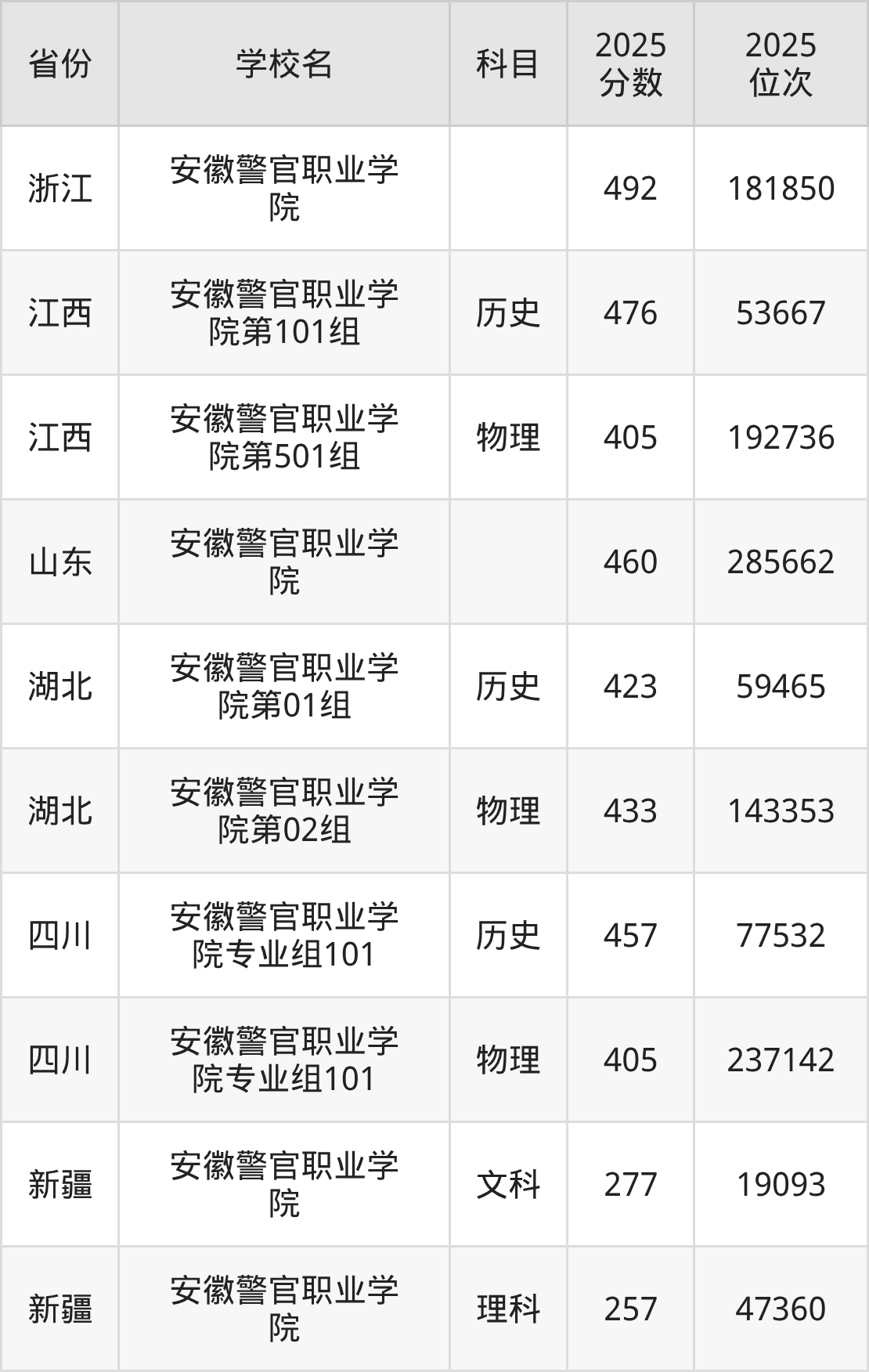 下面是安徽警官职业学院2025年录取分数线各省汇总,一起来了解下吧。