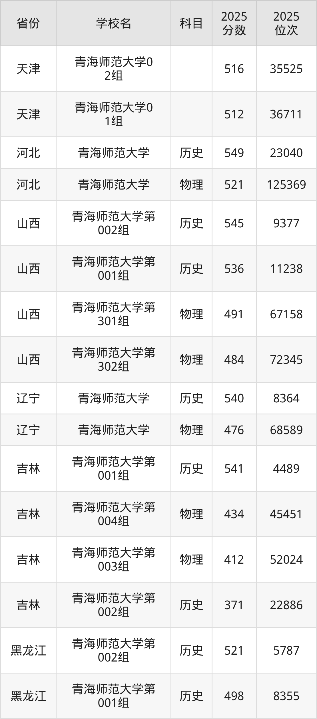 下面是青海师范大学2025年录取分数线各省汇总,一起来了解下吧。