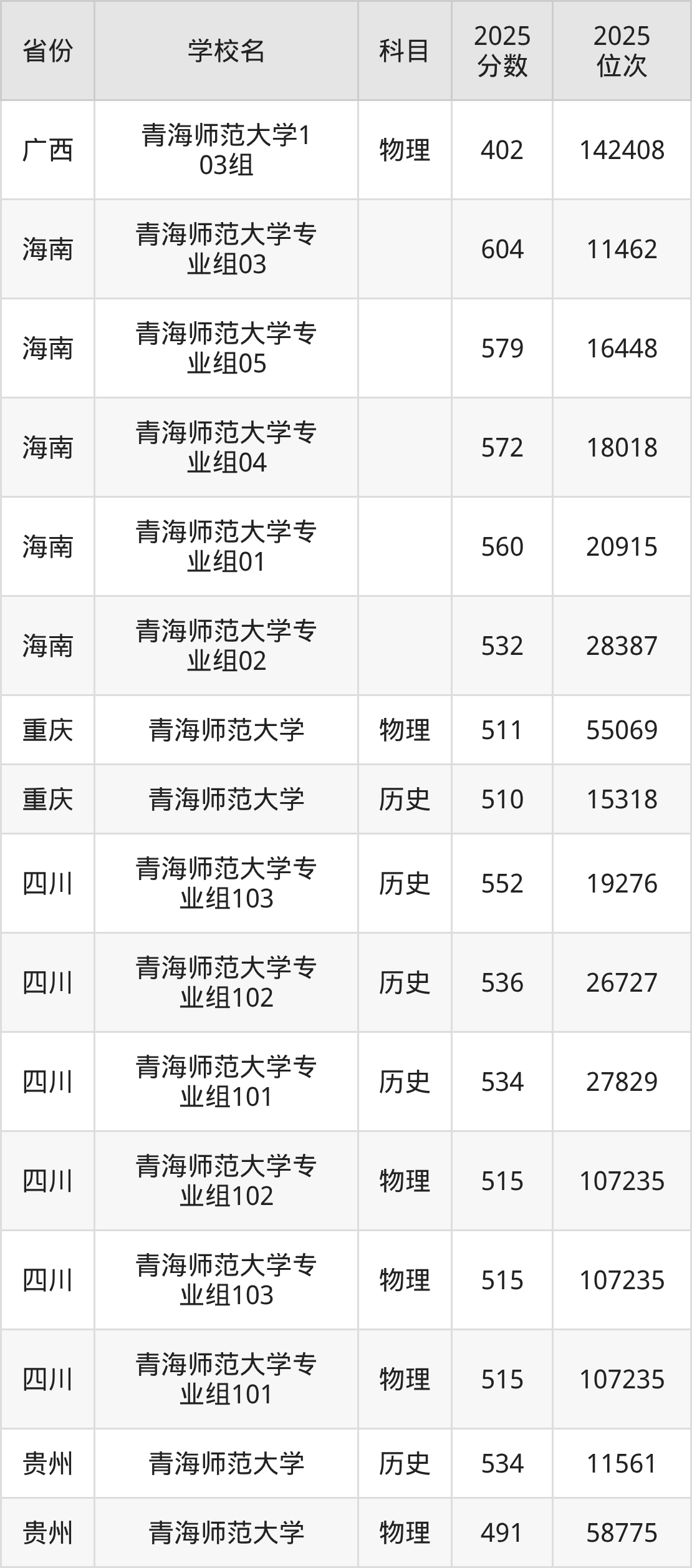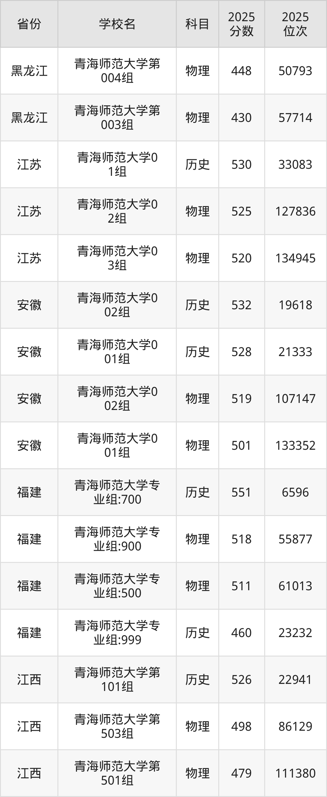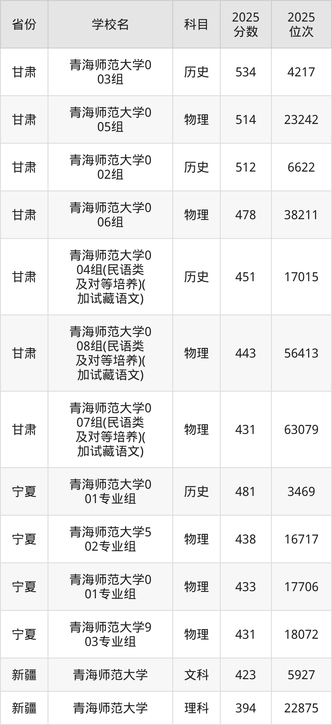 2025年青海师范大学历史类最低分498分(8355名)、物理类最低分430分(57714名)。