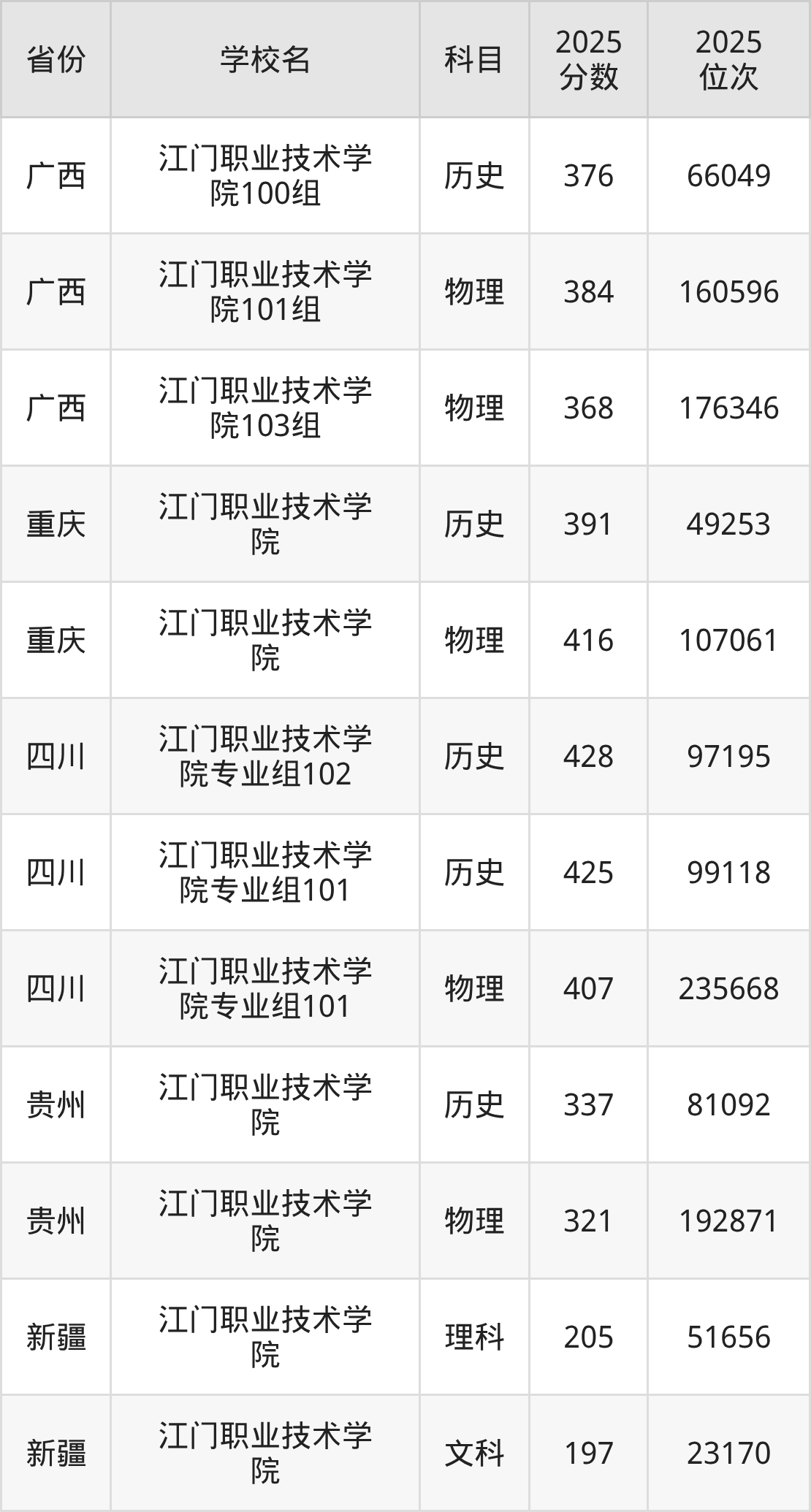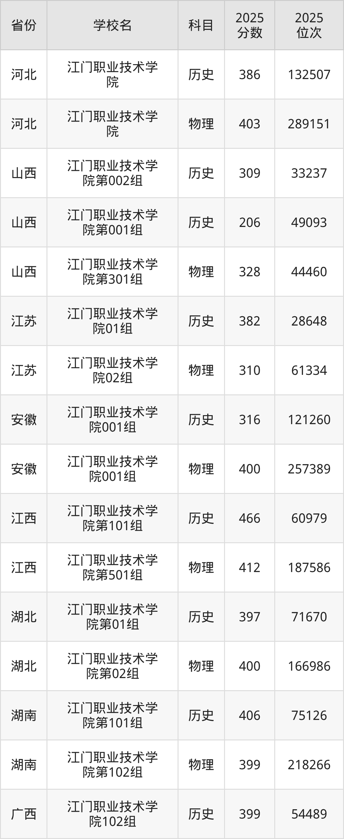 下面是江门职业技术学院2025年录取分数线各省汇总,一起来了解下吧。