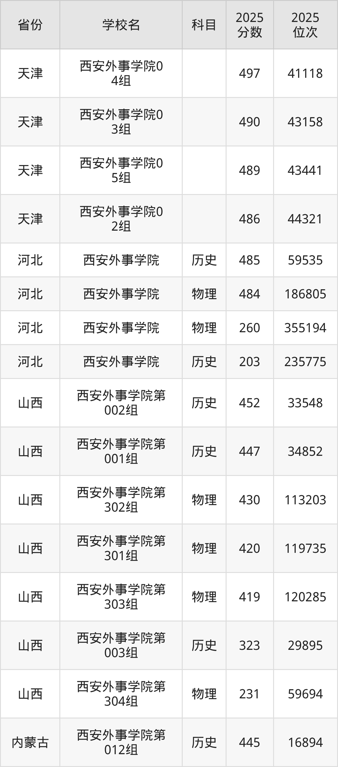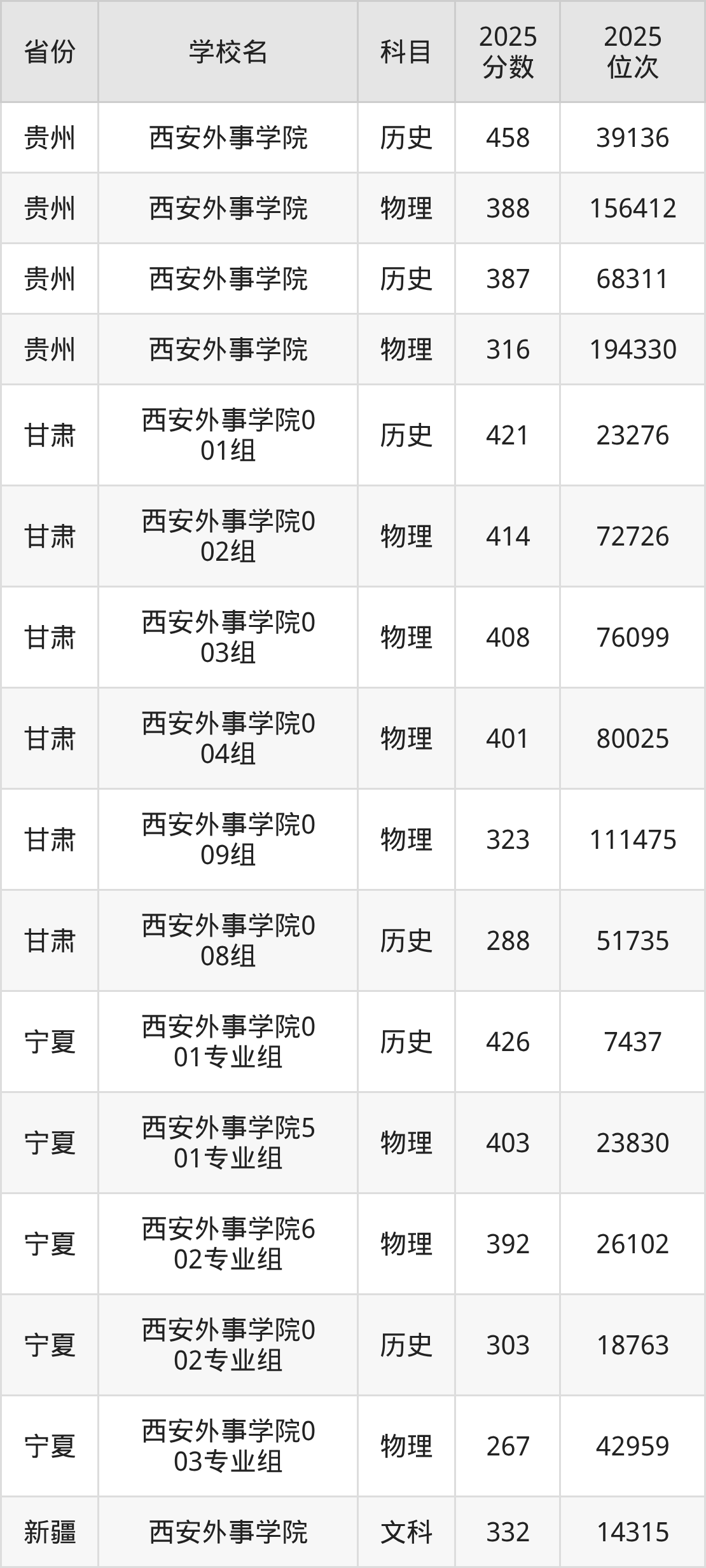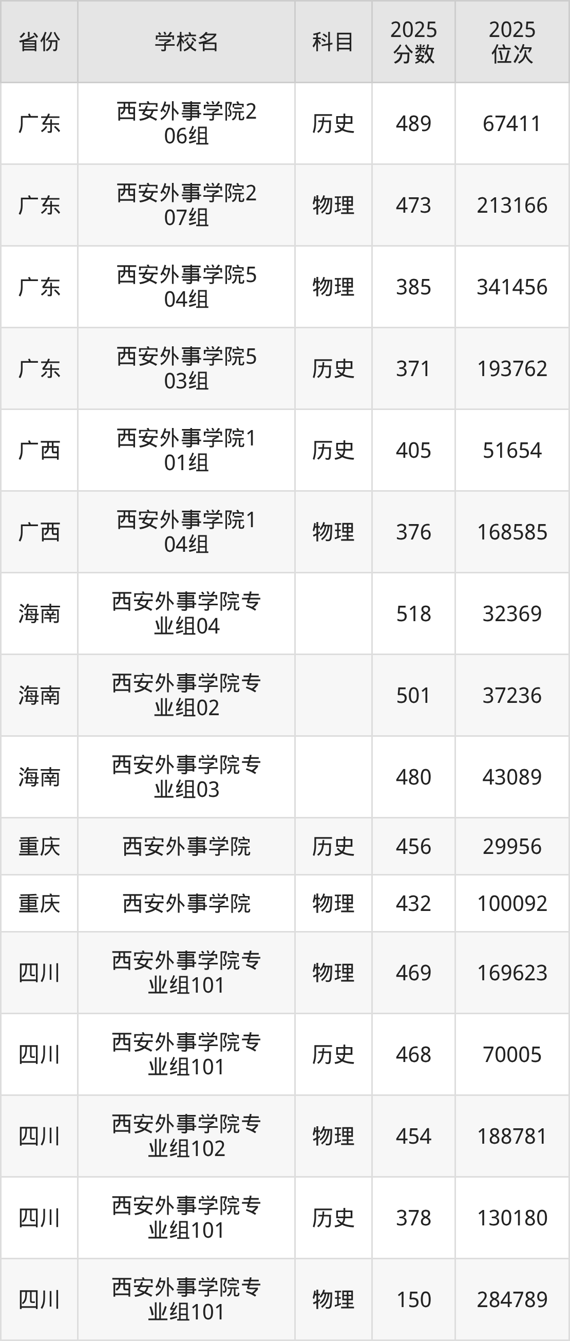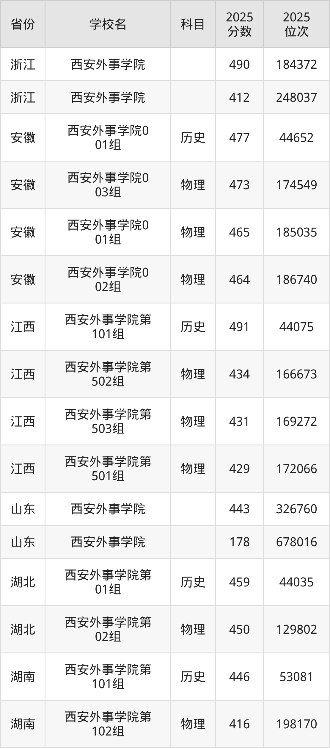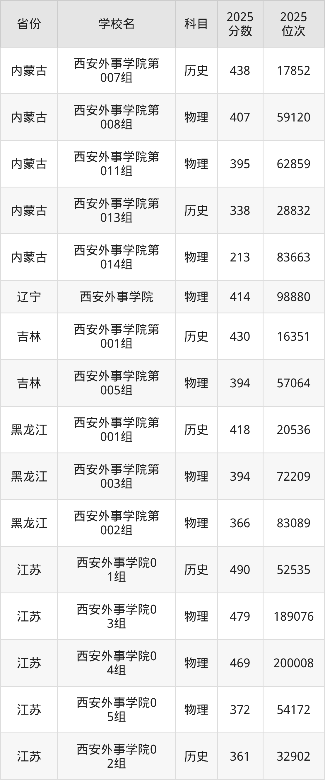 2025年西安外事学院历史类最低分203分(235775名)、物理类最低分260分(355194名)。